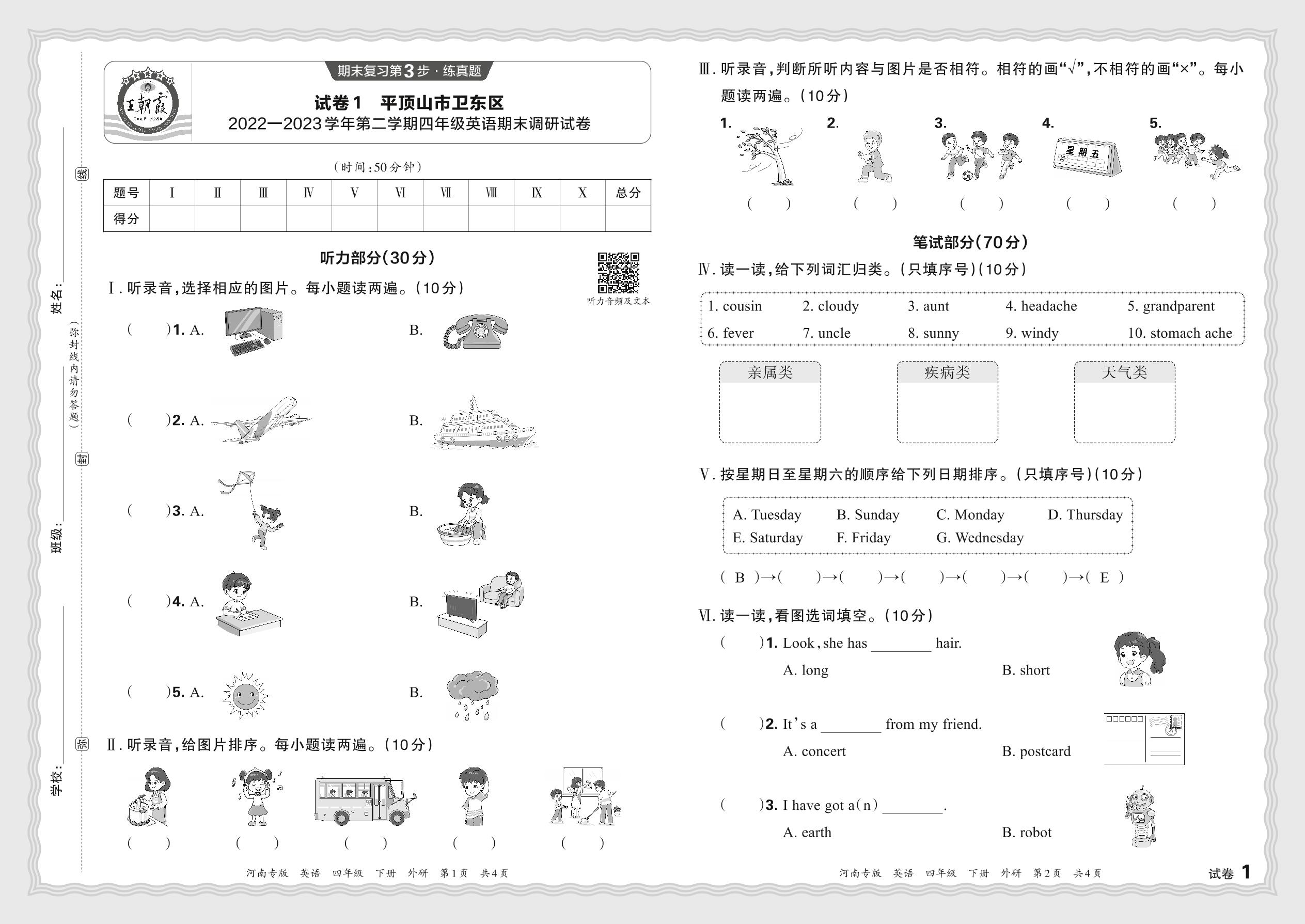河南省平顶山市卫东区2022—2023学年第二学期四年级英语期末调研试卷(外研版)【1】