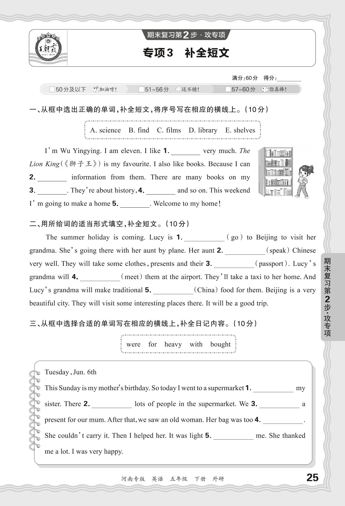 2024春下册五年级英语外研版 期末专项卷河南版·补全短文