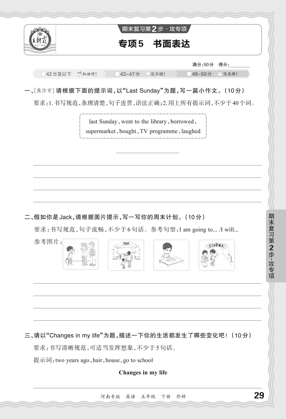 2024春下册五年级英语外研版 期末专项卷河南版·书面表达