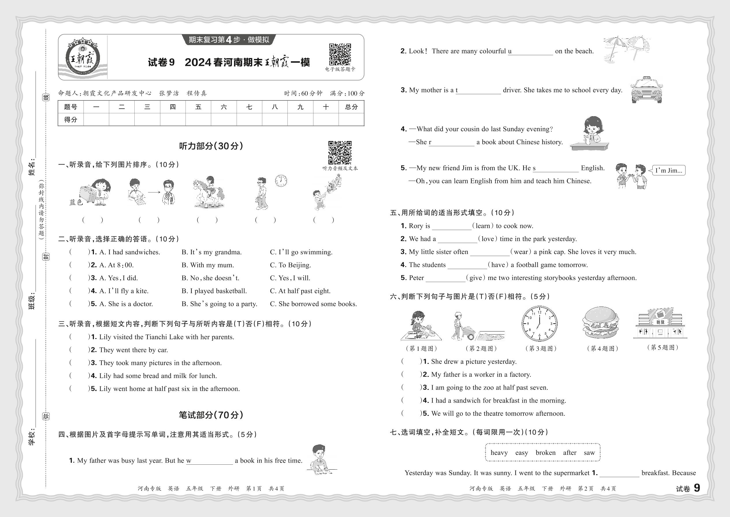 2024春下册五年级英语外研版 河南期末王朝霞一模