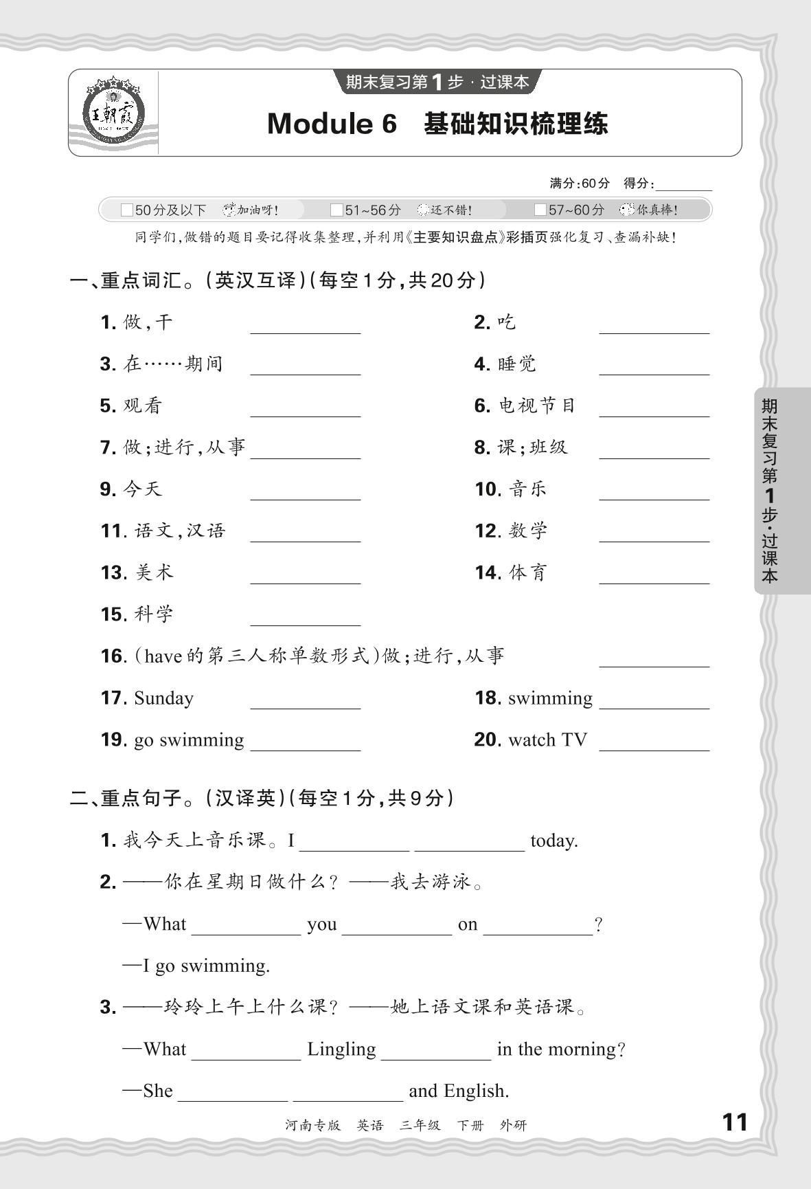 2024春下册三年级英语外研版 期末过课本河南版·Module 6 基础知识梳理练
