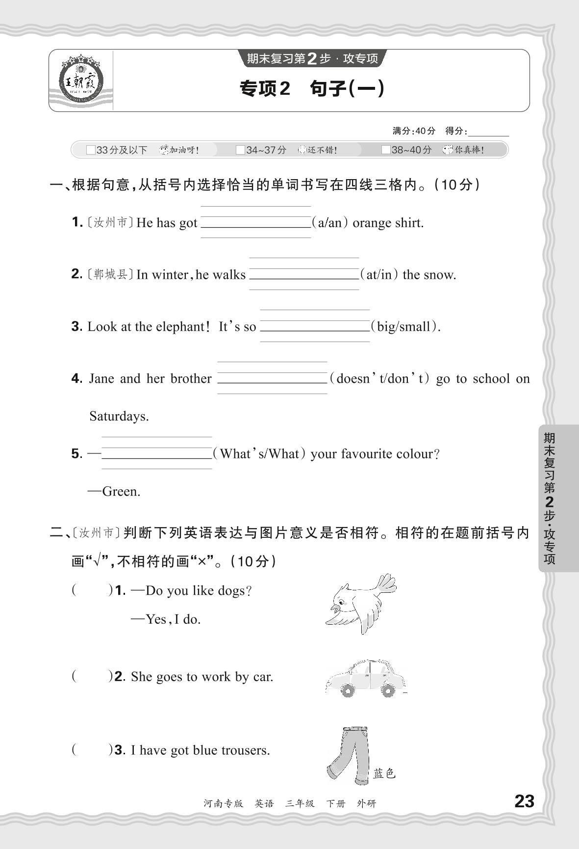 2024春下册三年级英语外研版 期末专项卷河南版·句子(一)