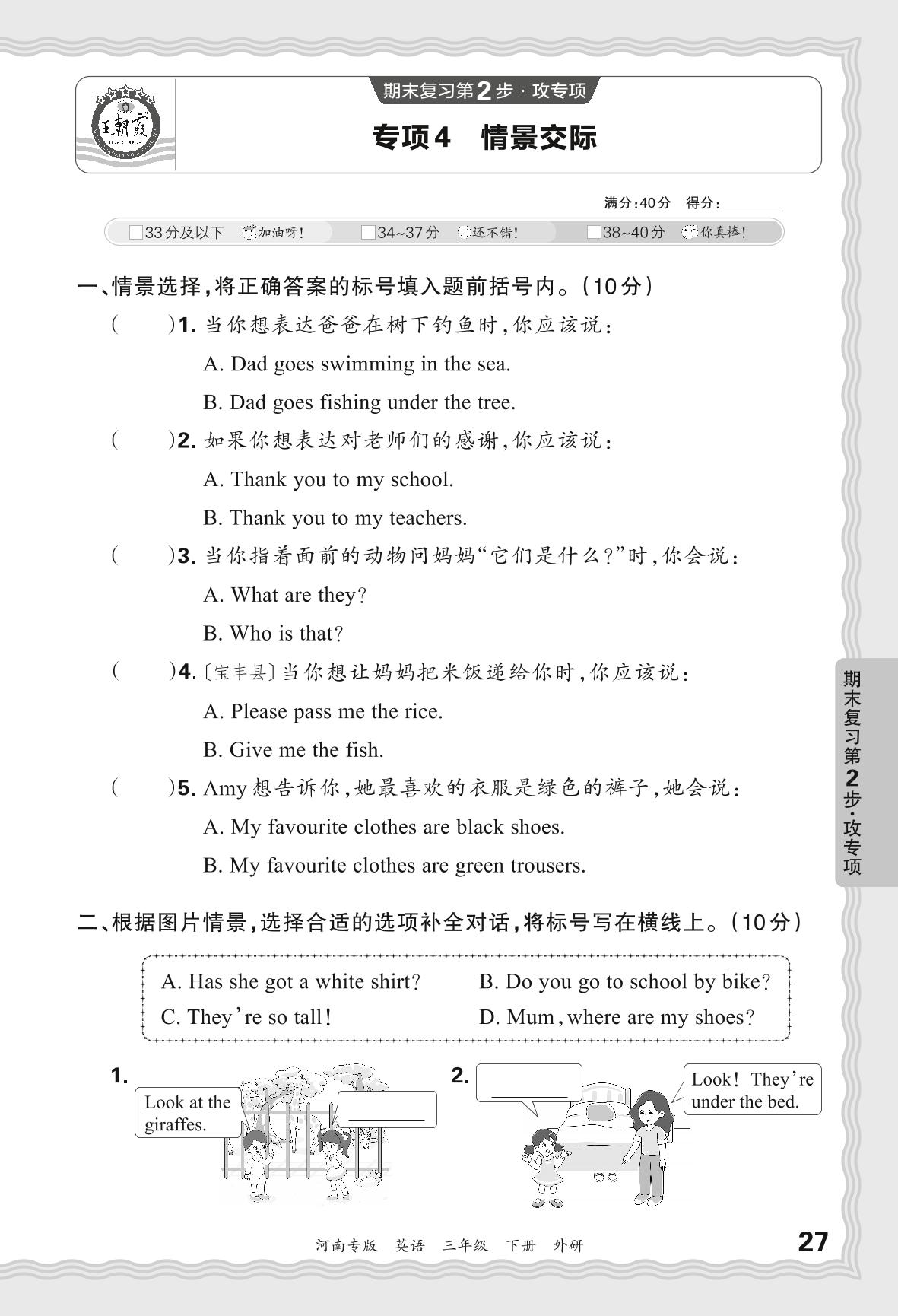 2024春下册三年级英语外研版 期末专项卷河南版·情景交际