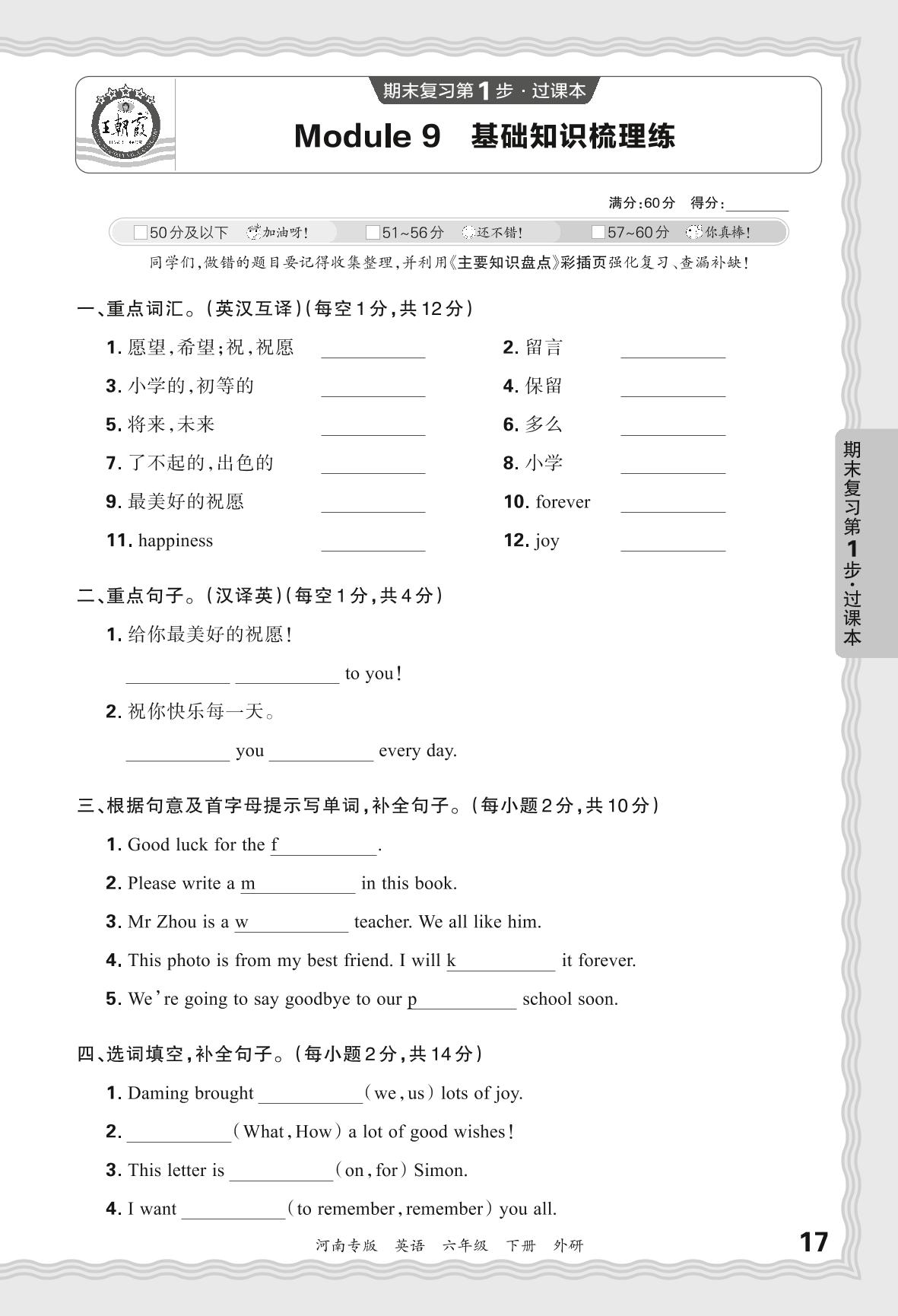 2024春下册六年级英语外研版 期末过课本河南版·Module 9 基础知识梳理练