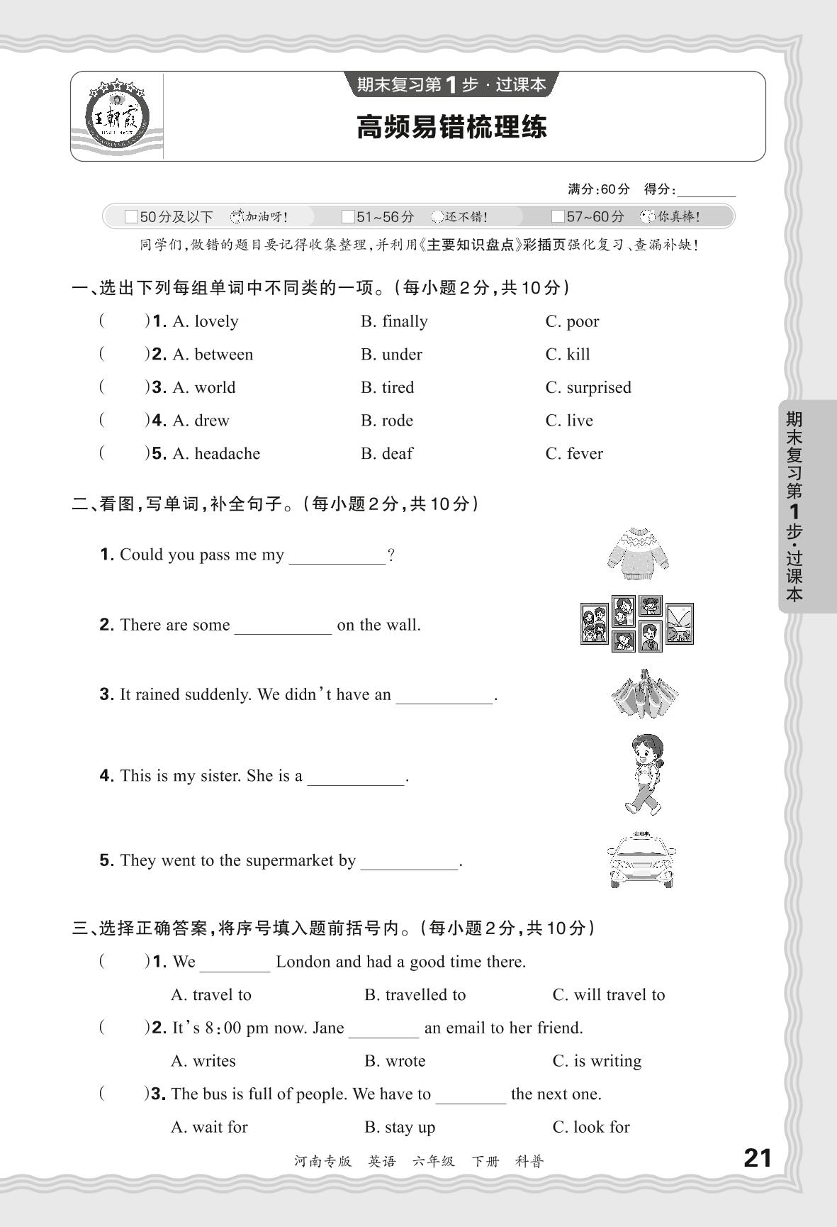 2024春下册六年级英语科普版 期末过课本河南版·高频易错梳理练