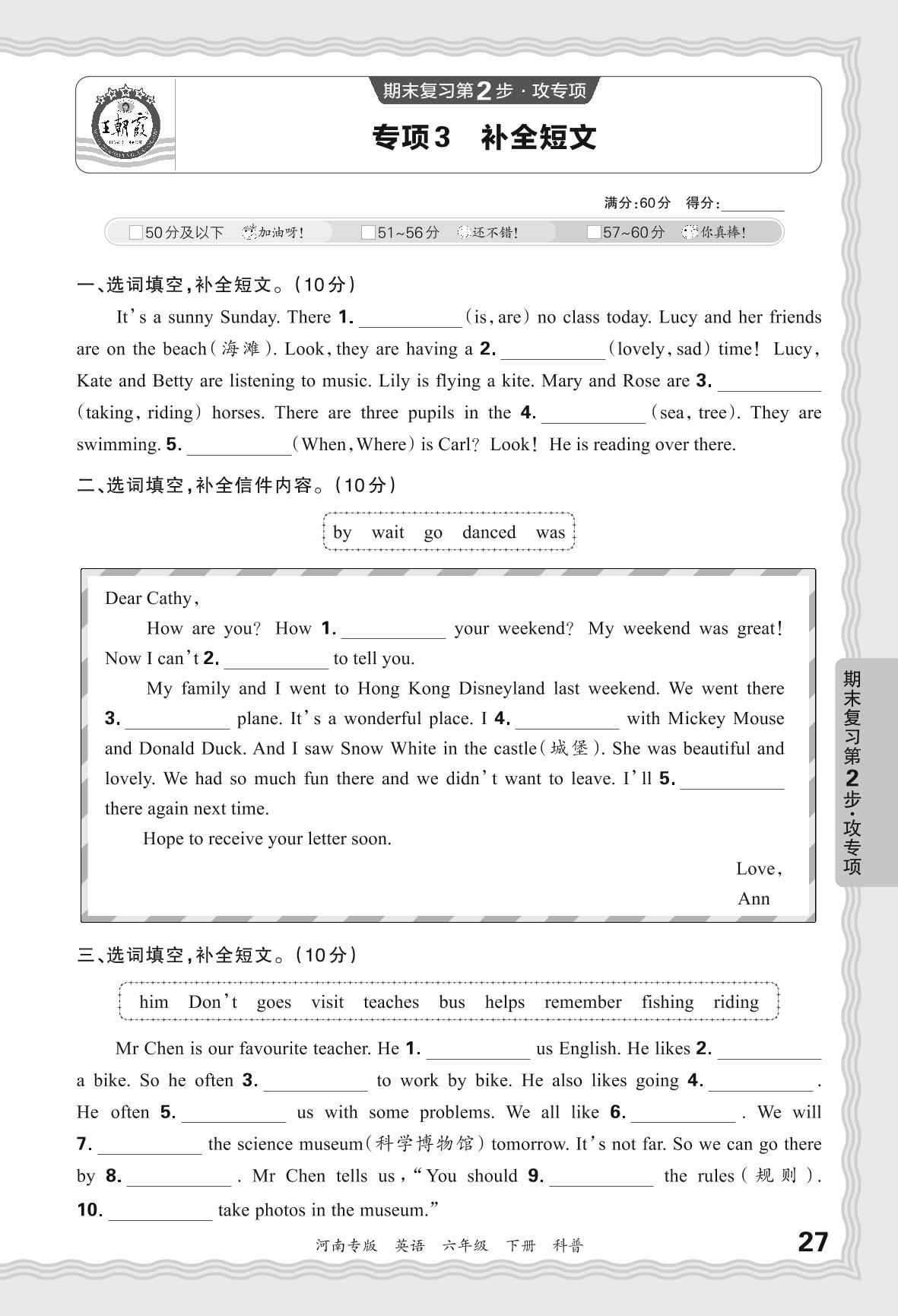 2024春下册六年级英语科普版 期末专项卷河南版·补全短文