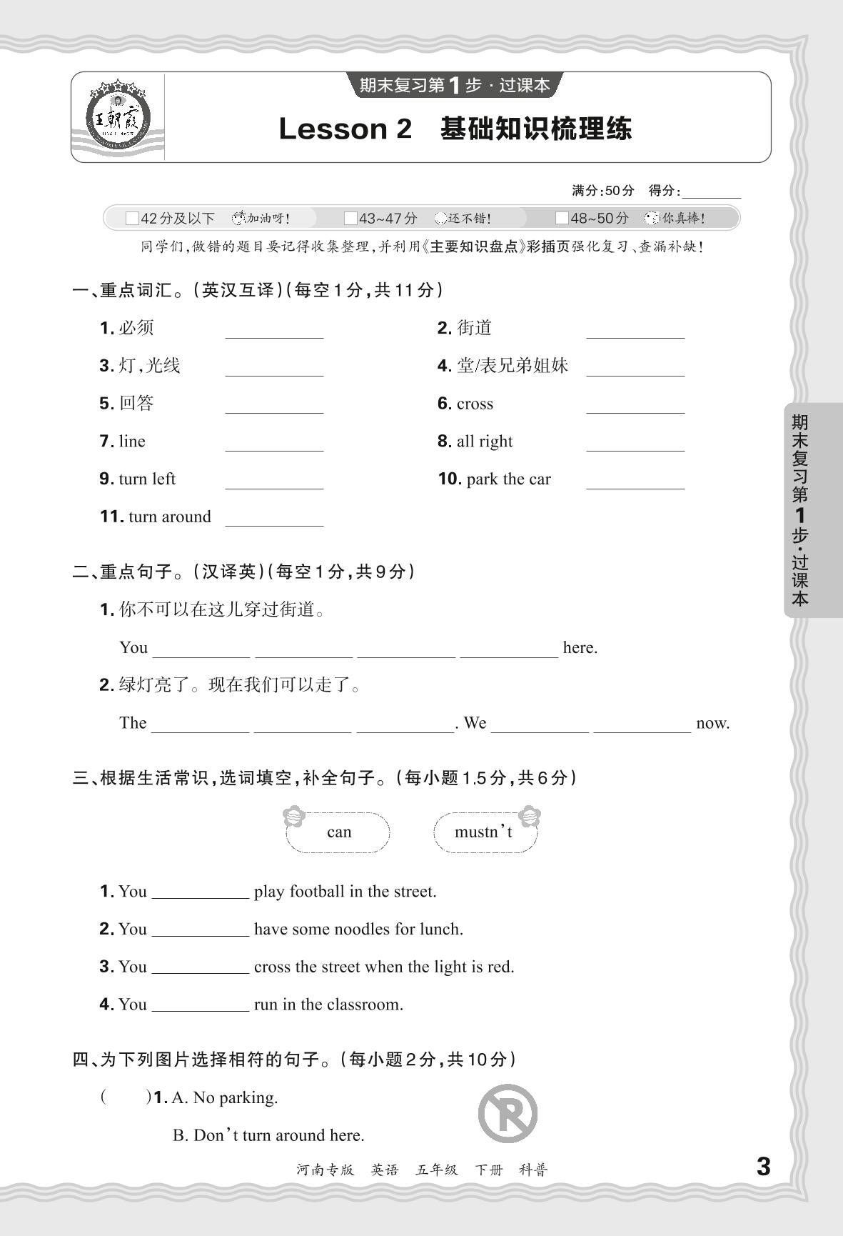 2024春下册五年级英语科普版 期末过课本河南版·Lesson 2 基础知识梳理练
