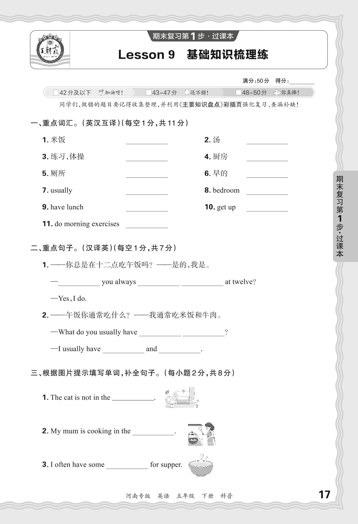2024春下册五年级英语科普版 期末过课本河南版·Lesson 9 基础知识梳理练