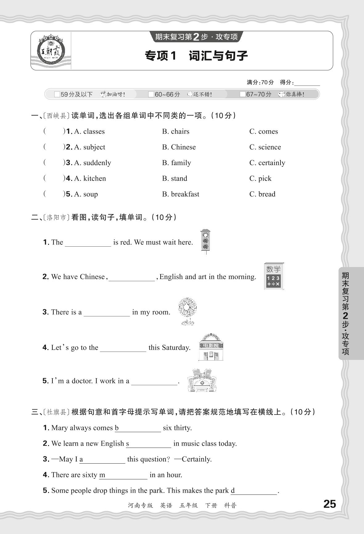 2024春下册五年级英语科普版 期末专项卷河南版·词汇与句子