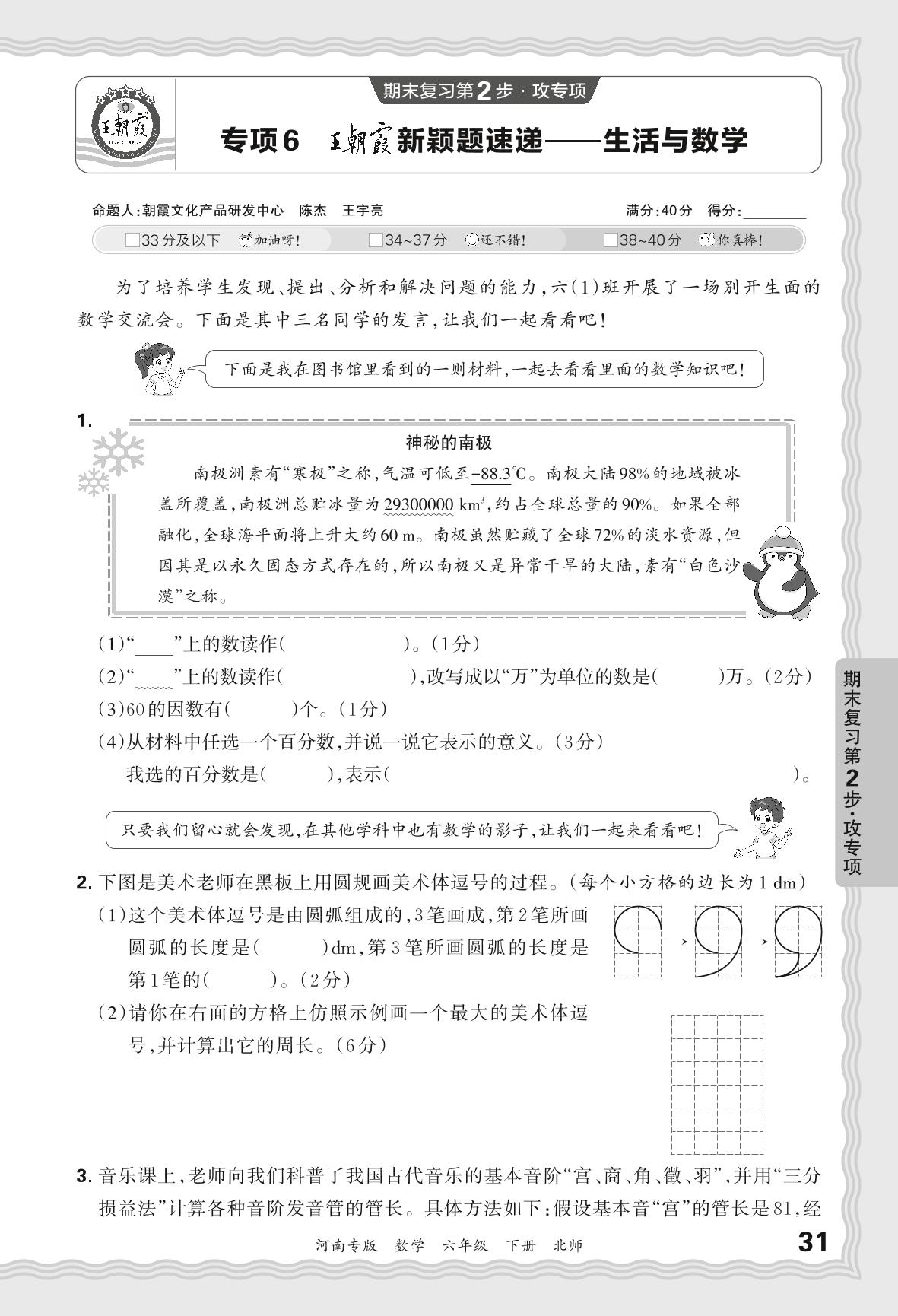 2024春下册六年级数学北师版 期末专项卷河南版·王朝霞新颖题速递——生活与数学