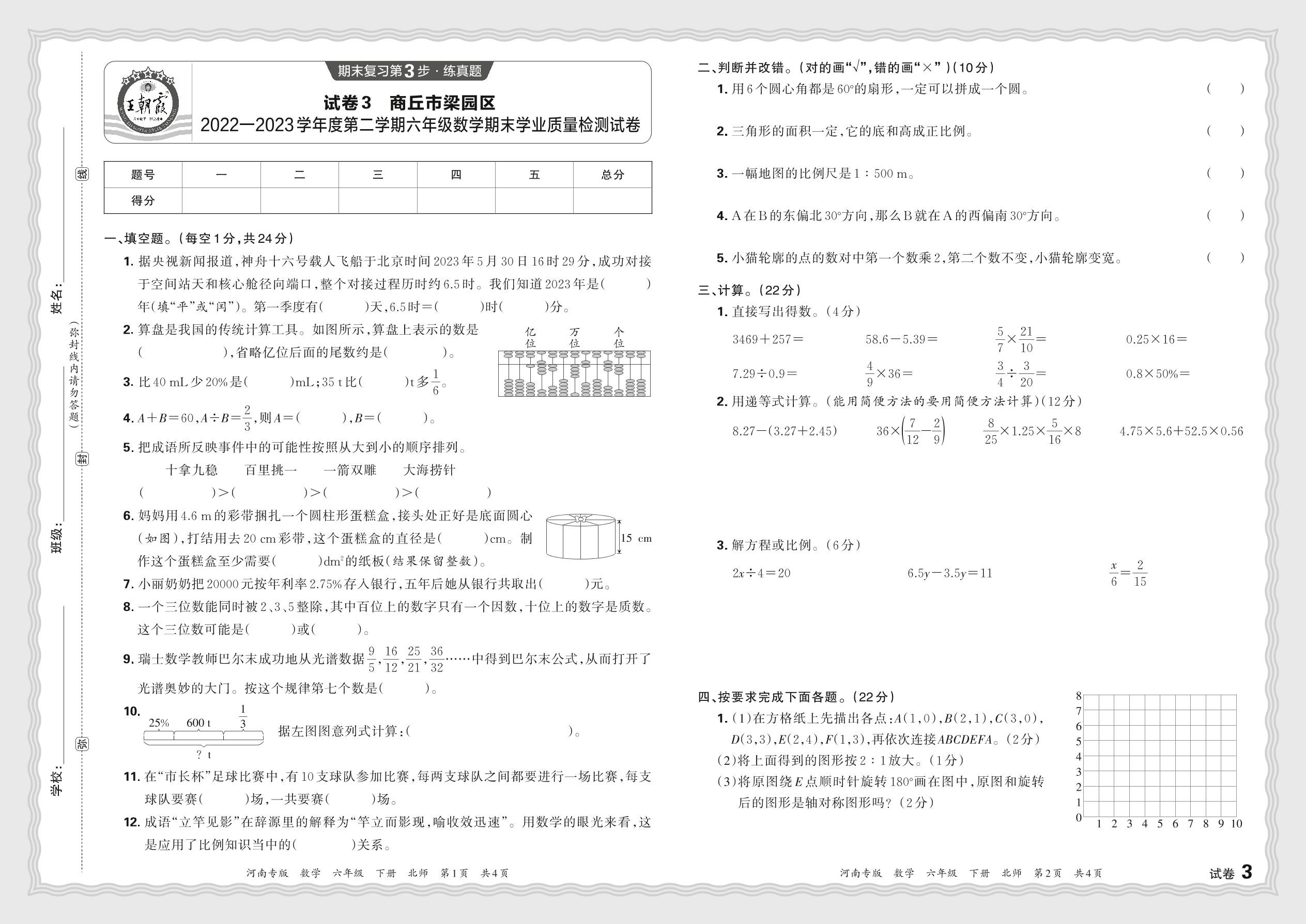 河南省商丘市梁园区2022—2023学年度第二学期六年级数学期末学业质量检测试卷(北师版)【3】