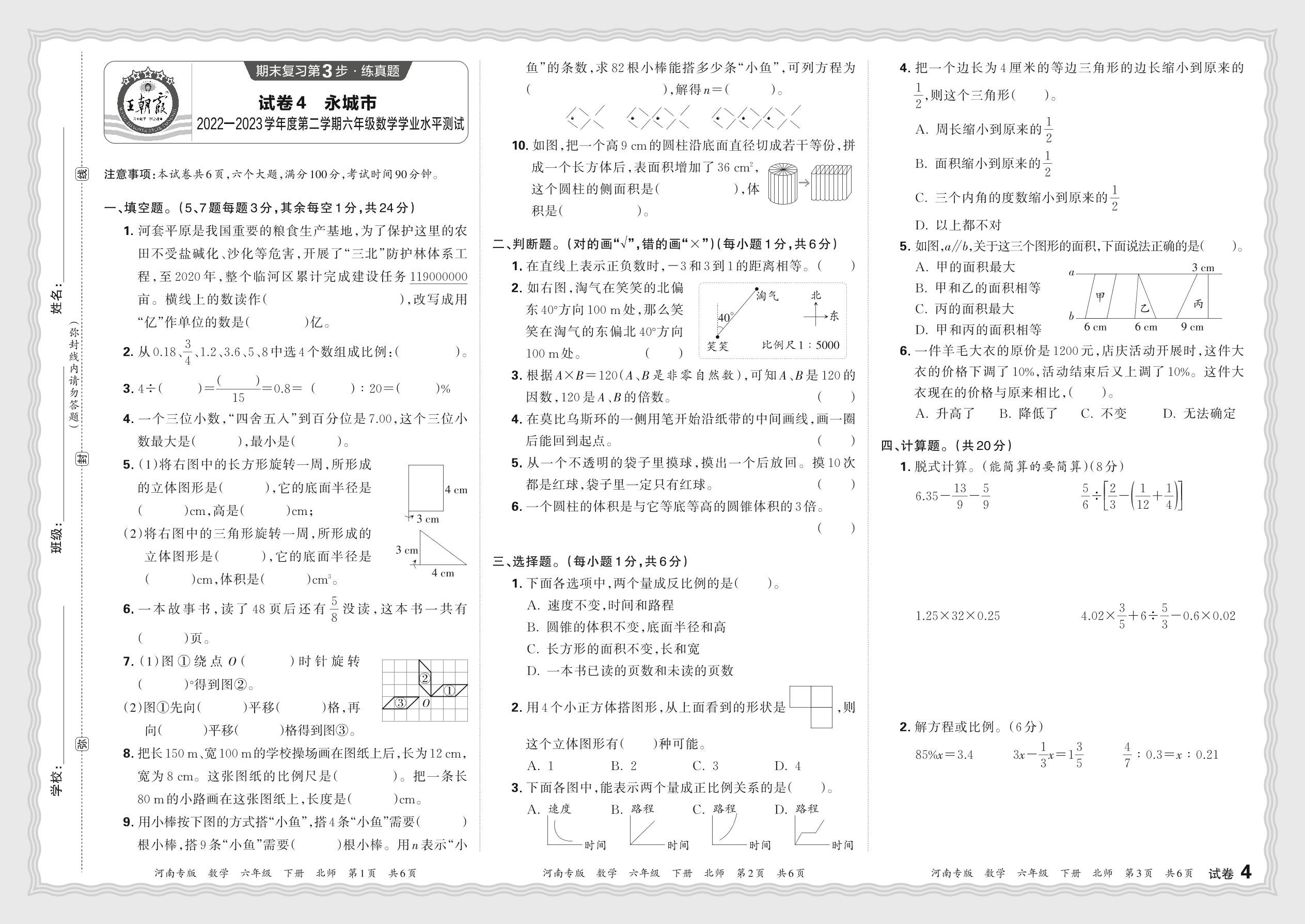 河南省商丘市永城市2022—2023学年度第二学期六年级数学学业水平测试(北师版)【4】