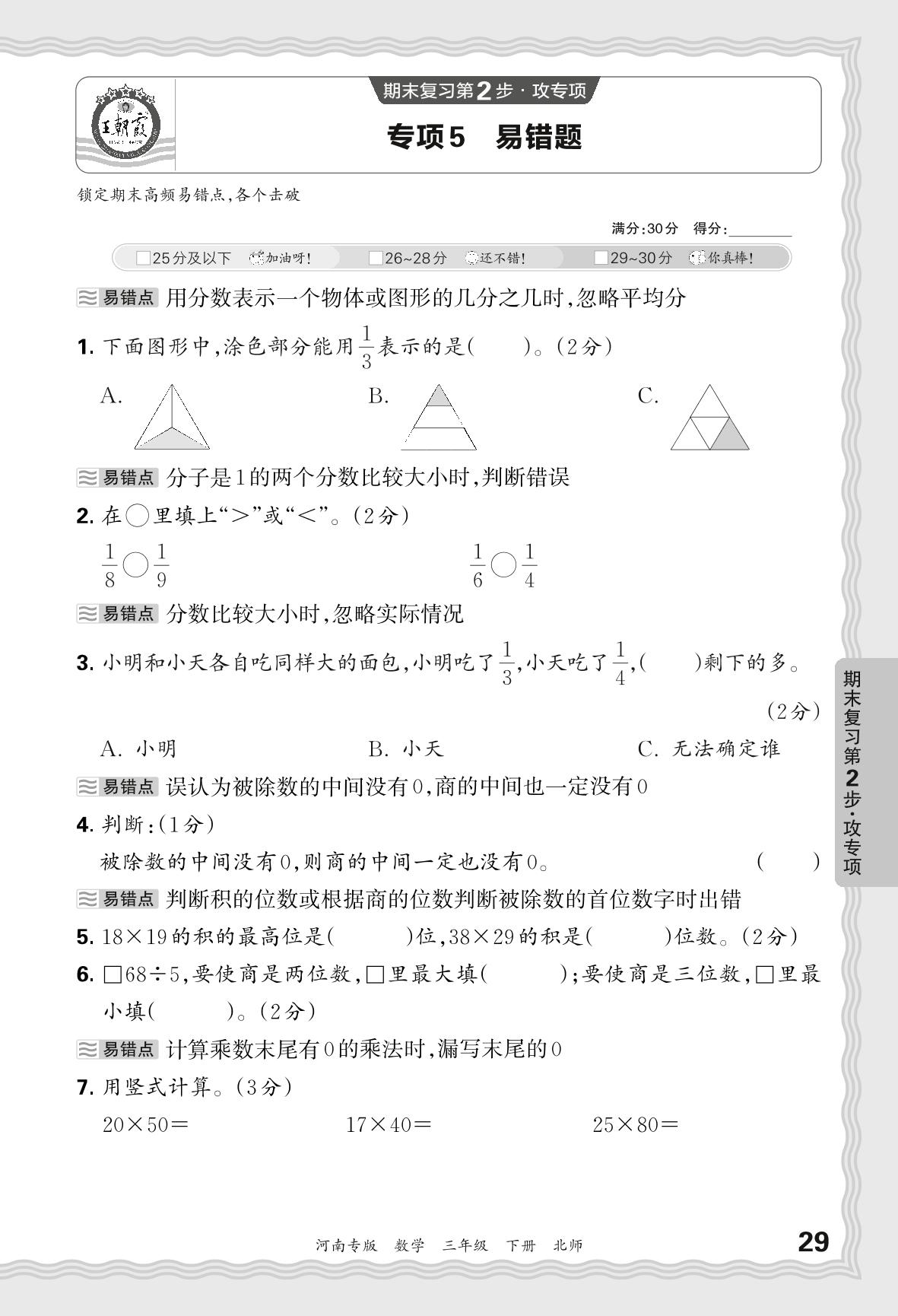 2024春下册三年级数学北师版 期末专项卷河南版·易错题【5】