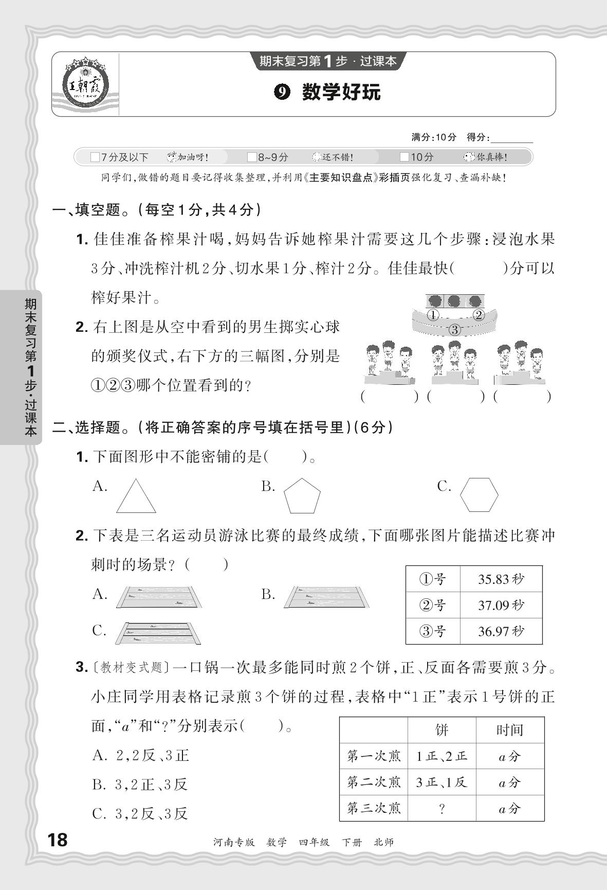 2024春下册四年级数学北师版 期末过课本河南版·数学好玩