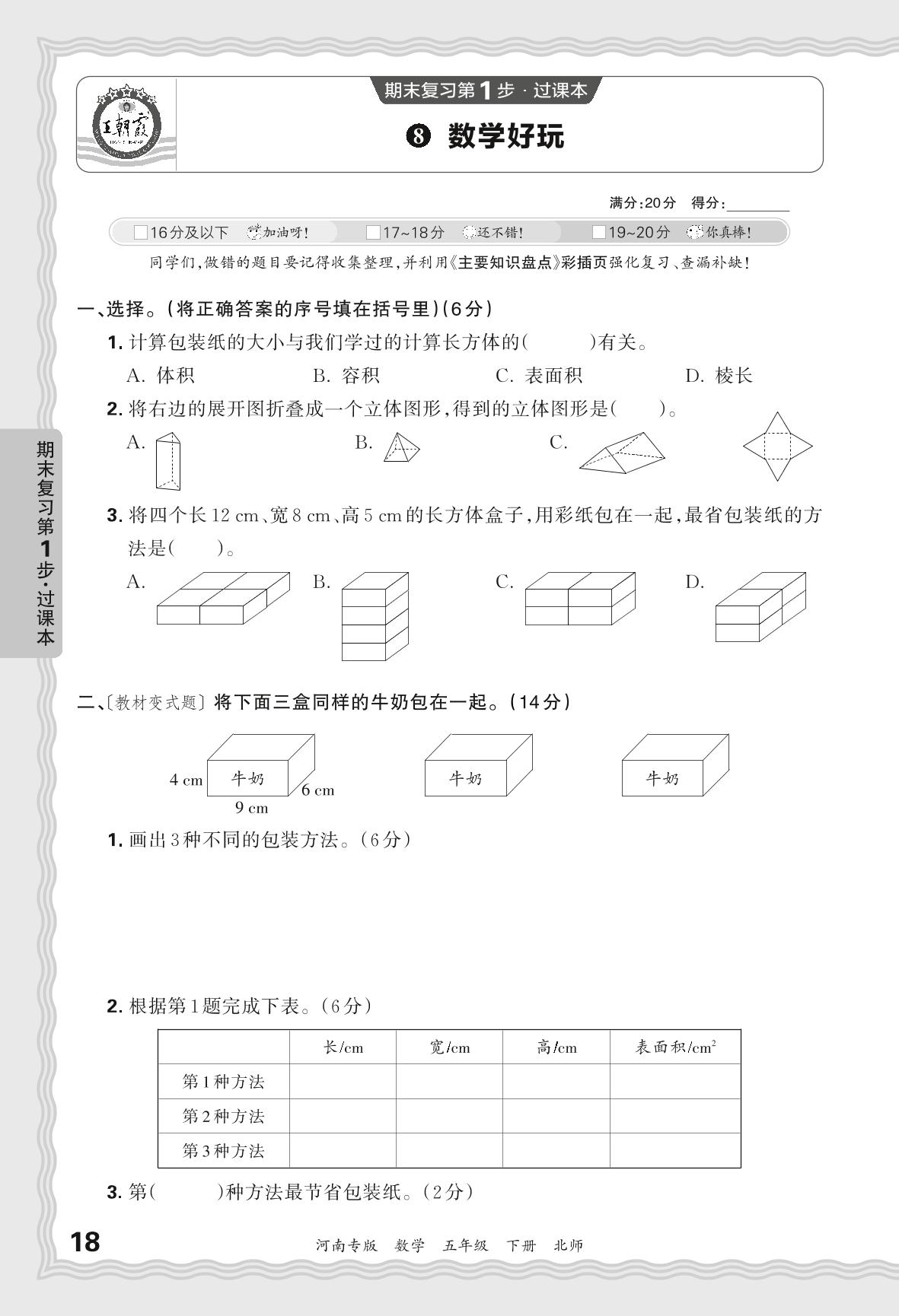 2024春下册五年级数学北师版 期末过课本河南版·数学好玩