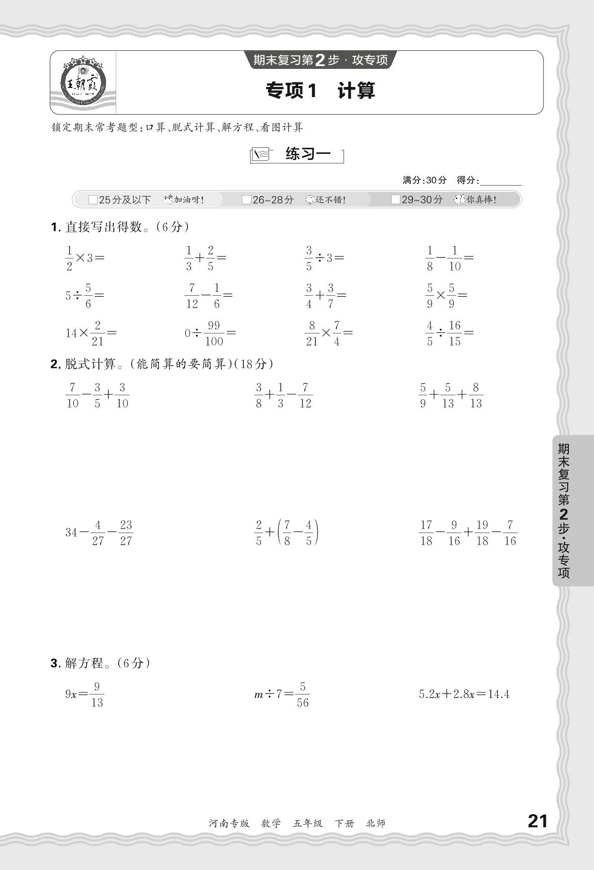 2024春下册五年级数学北师版 期末专项卷河南版·计算