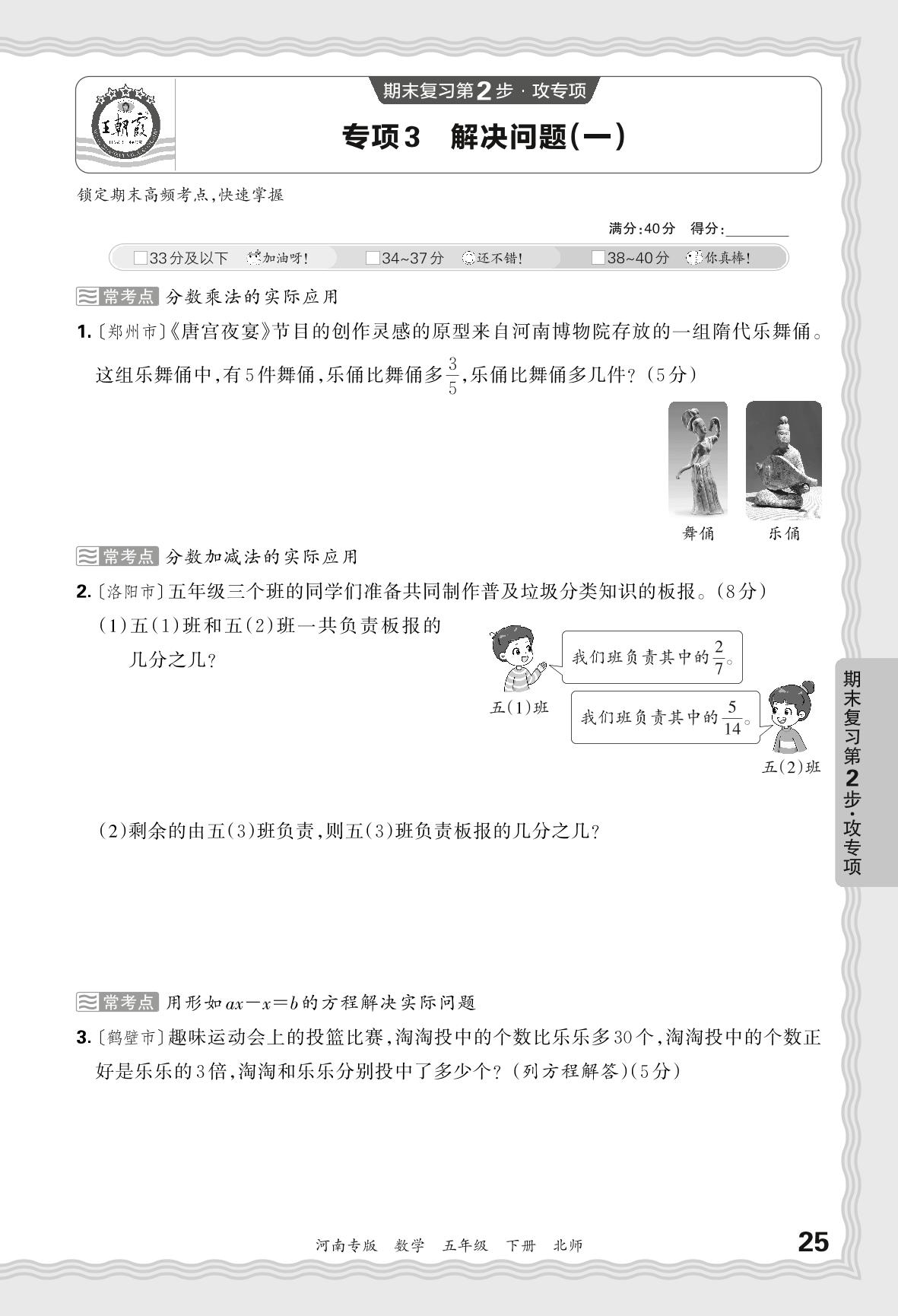 2024春下册五年级数学北师版 期末专项卷河南版·解决问题(一)