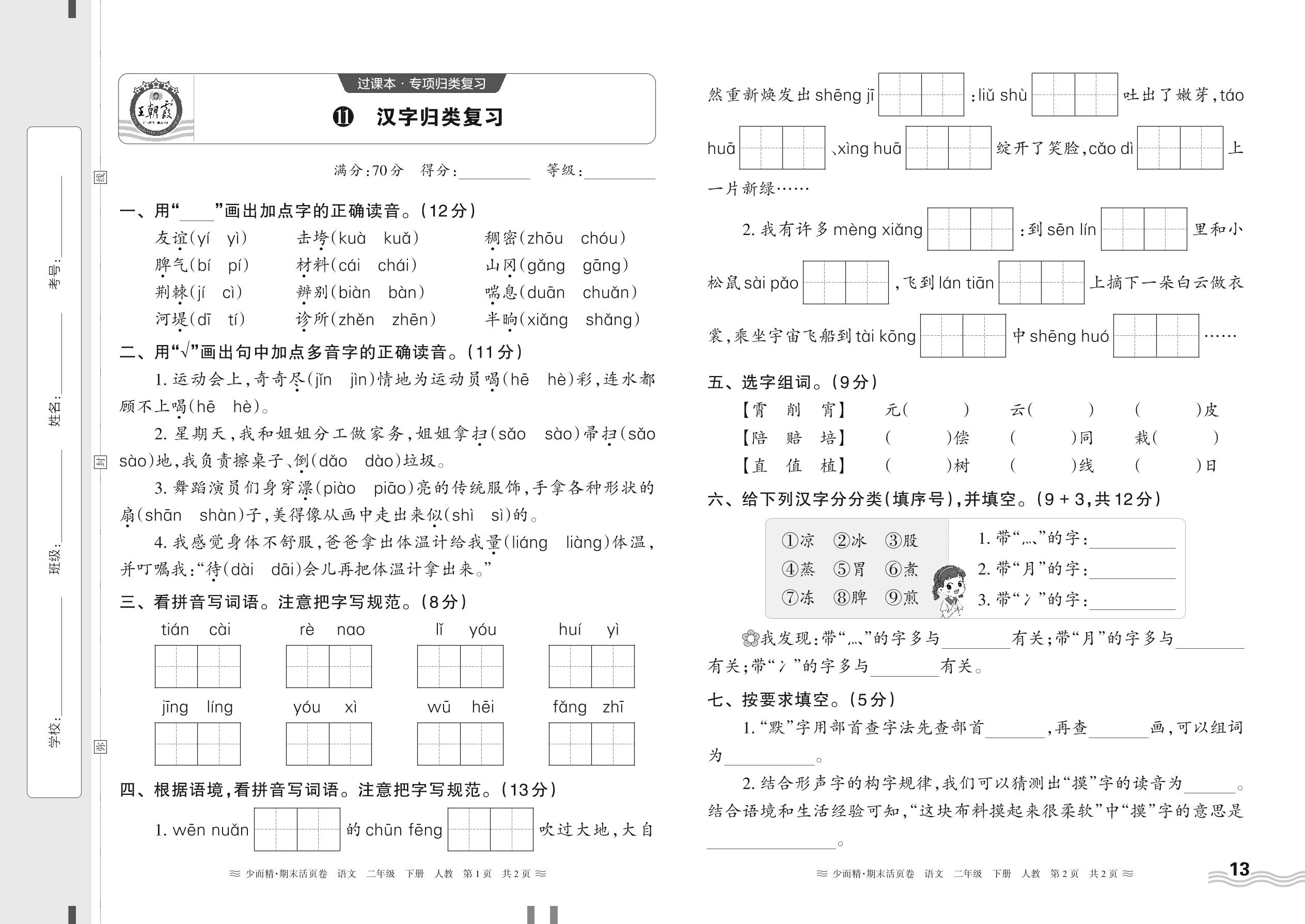 2024春下册二年级语文人教版 期末过课本HY版·汉字归类复习