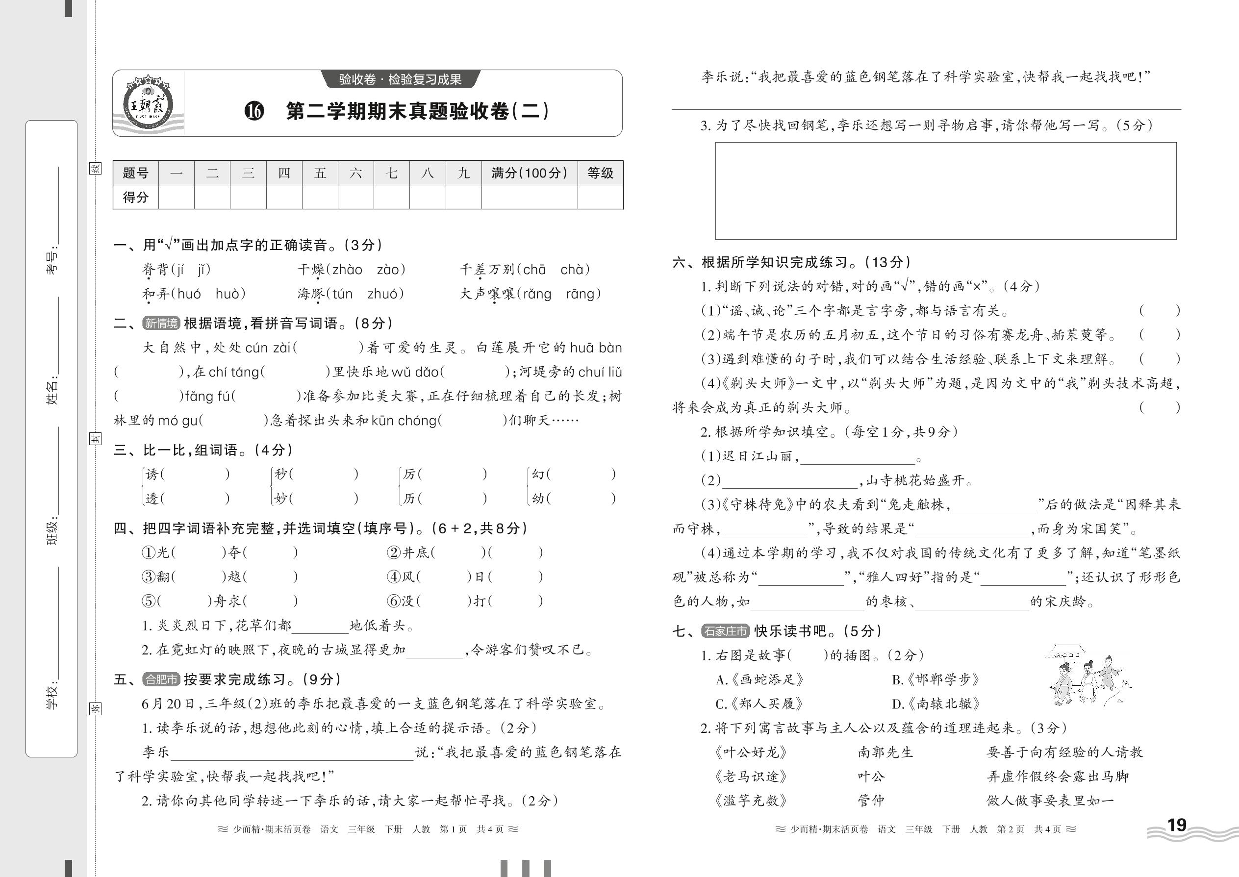 2024春下册三年级语文人教版 第二学期期末真题验收卷(二)