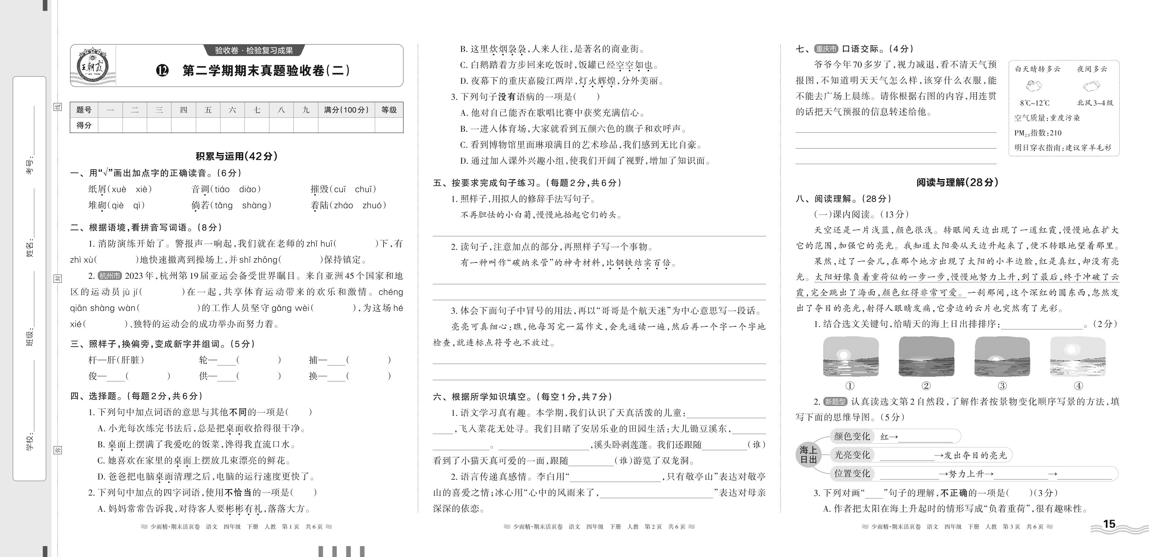2024春下册四年级语文人教版 第二学期期末真题验收卷(二)