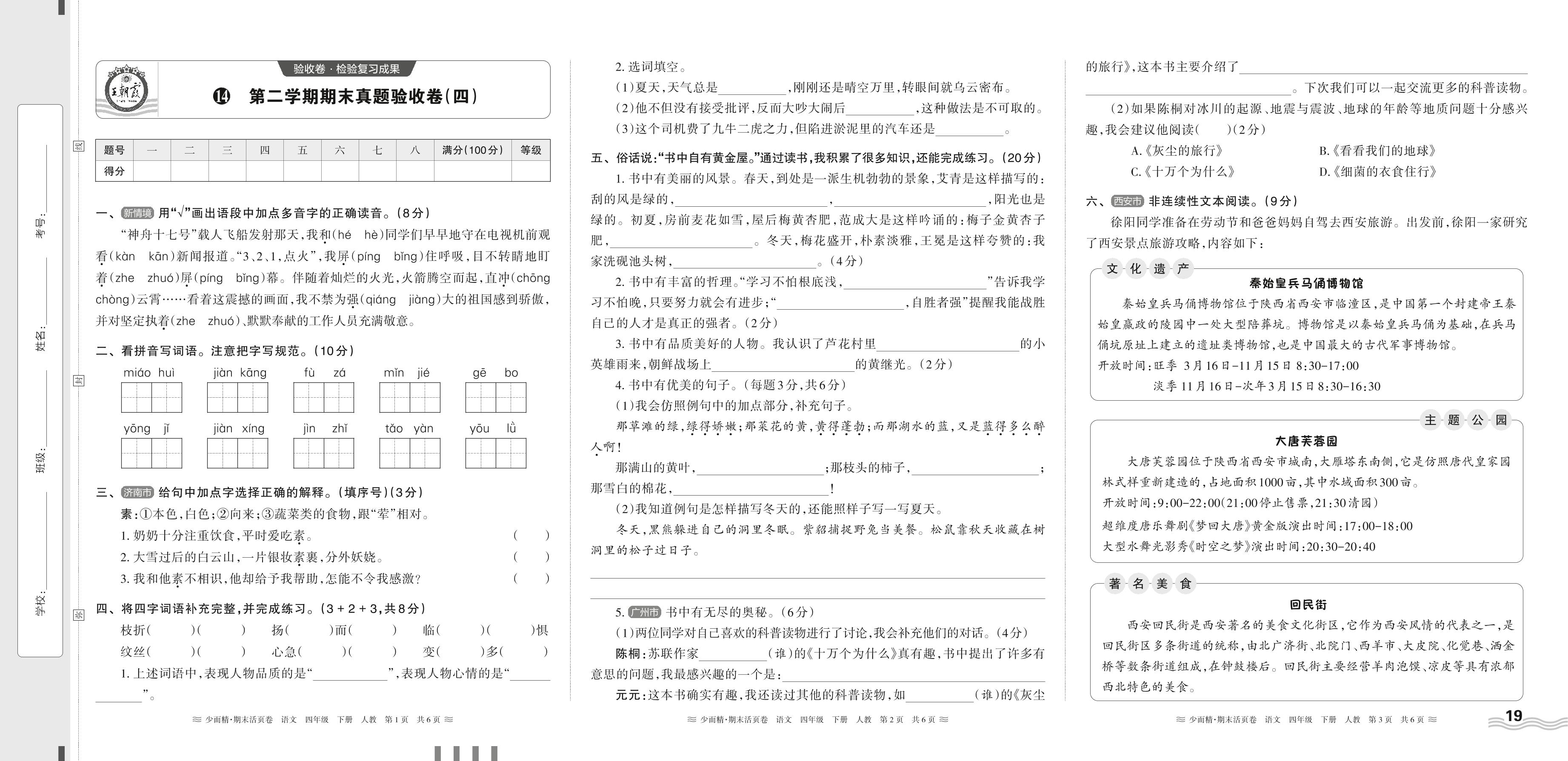 2024春下册四年级语文人教版 第二学期期末真题验收卷(四)
