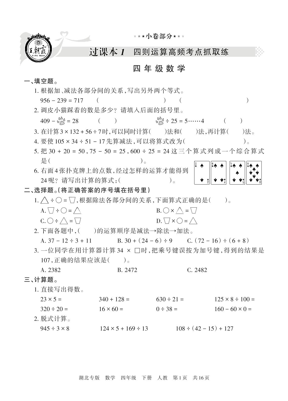 王朝霞期末过课本四年级下册数学(人教版)_R210804135741【0】