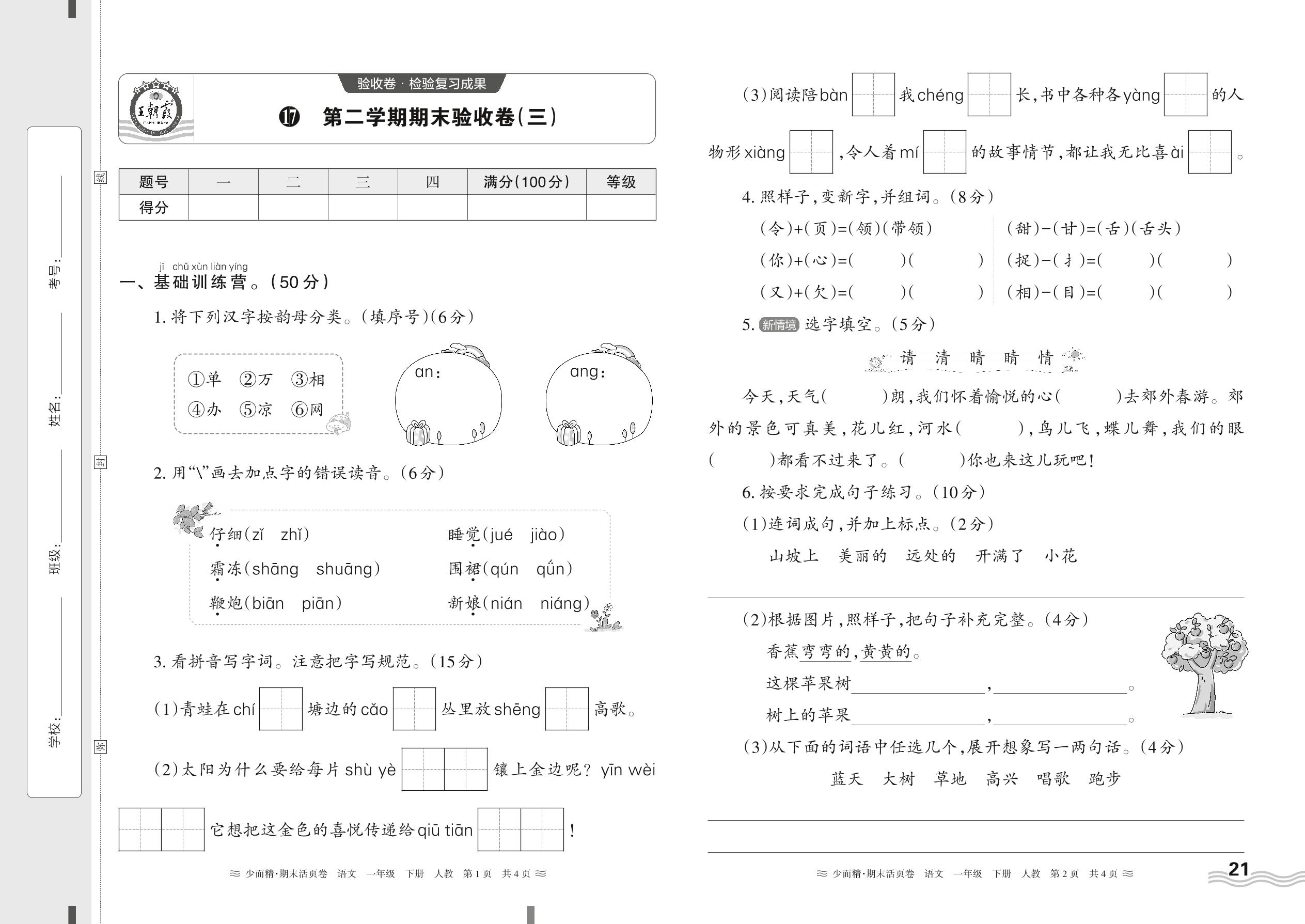 2024春下册一年级语文人教版 第二学期期末验收卷(三)