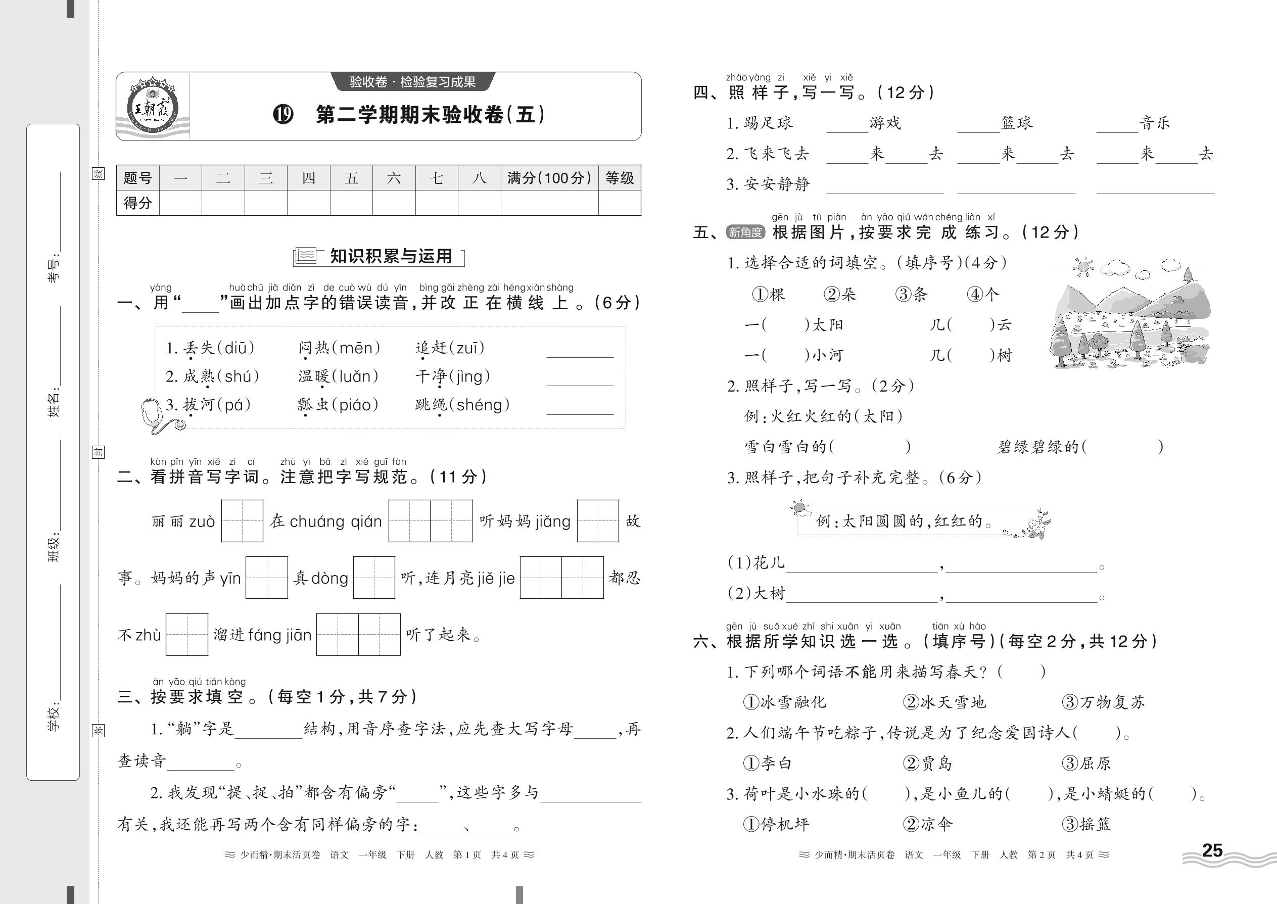 2024春下册一年级语文人教版 第二学期期末验收卷(五)
