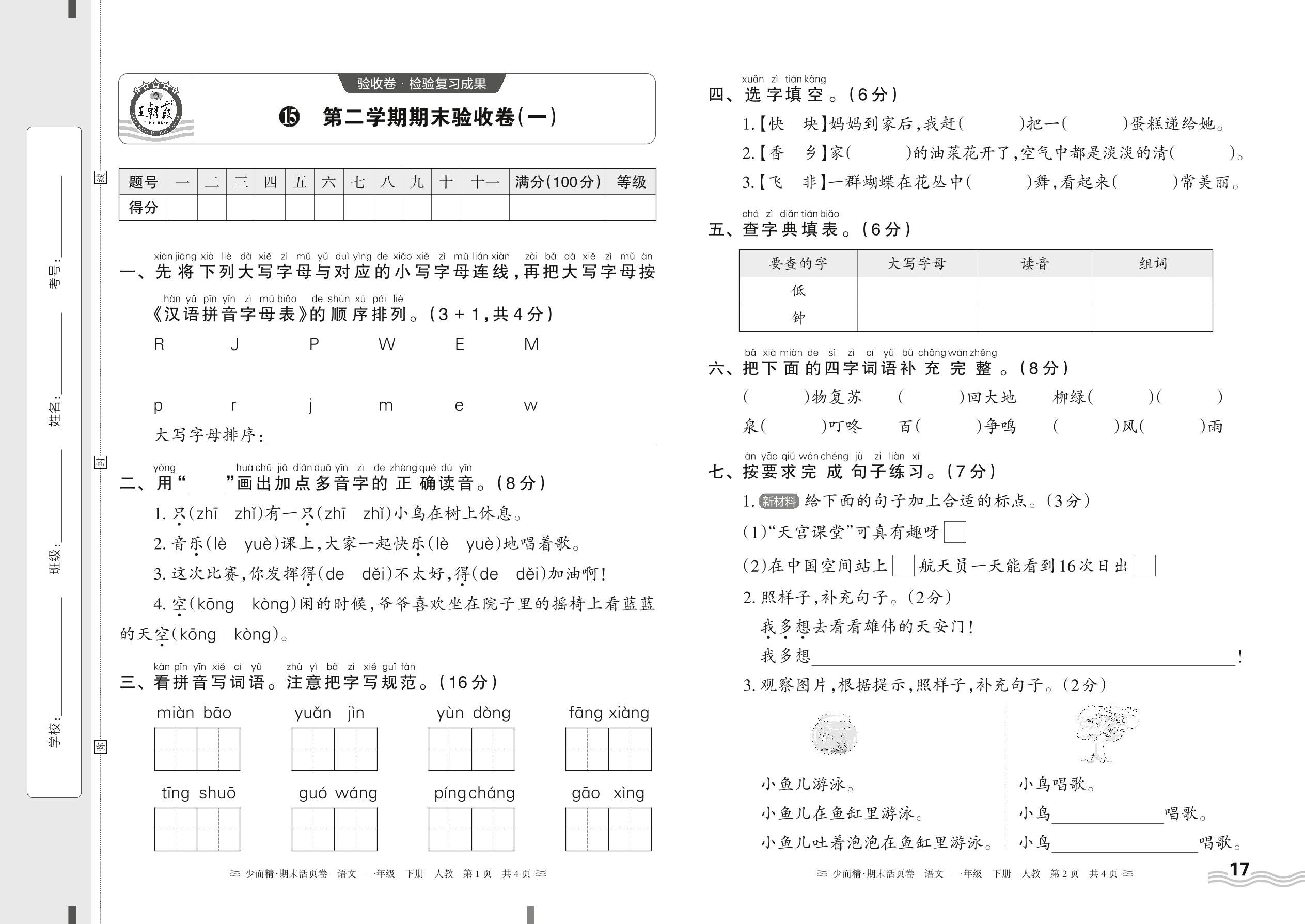 2024春下册一年级语文人教版 第二学期期末验收卷(一)
