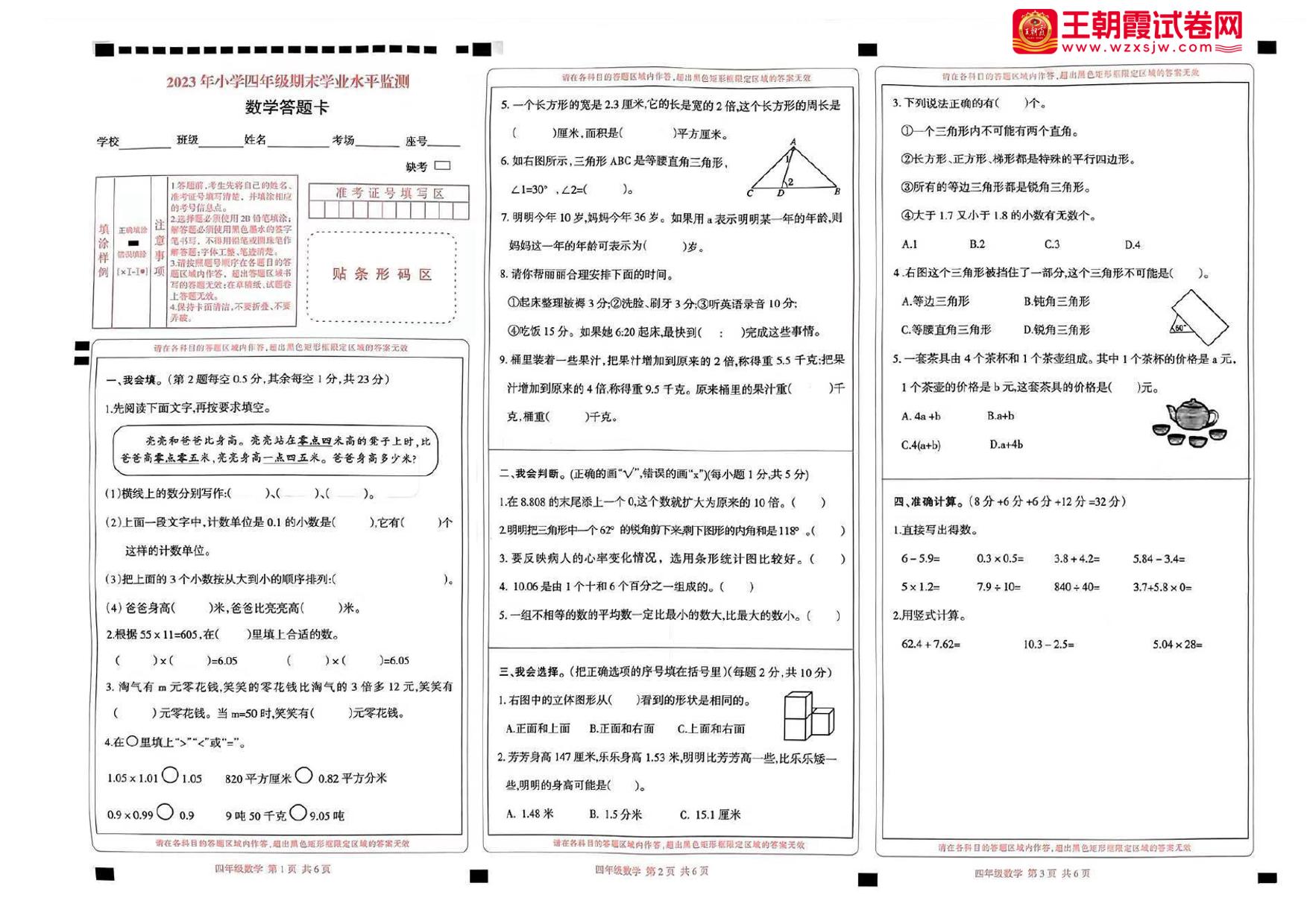 河南省驻马店市上蔡县2022—2023学年下学期期末学业水平监测四年级数学(北师版)