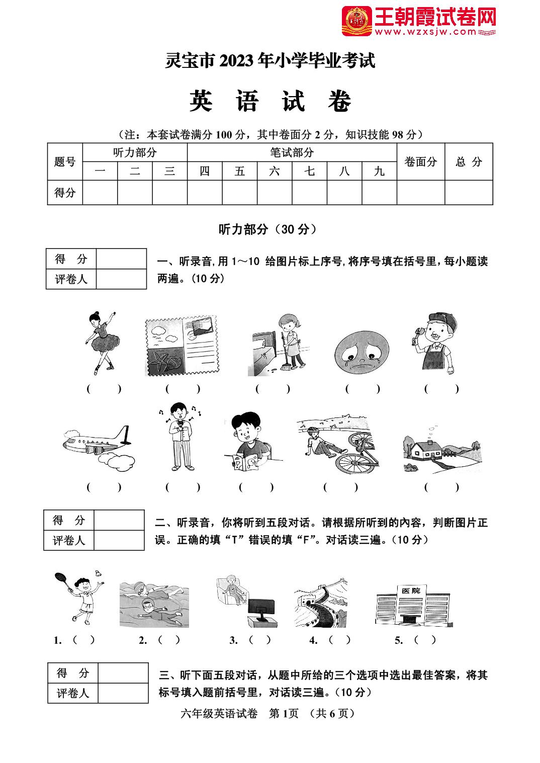河南省三门峡市灵宝市2022—2023学年下学期小学毕业考试六年级英语(人教PEP版)【无听力音频】