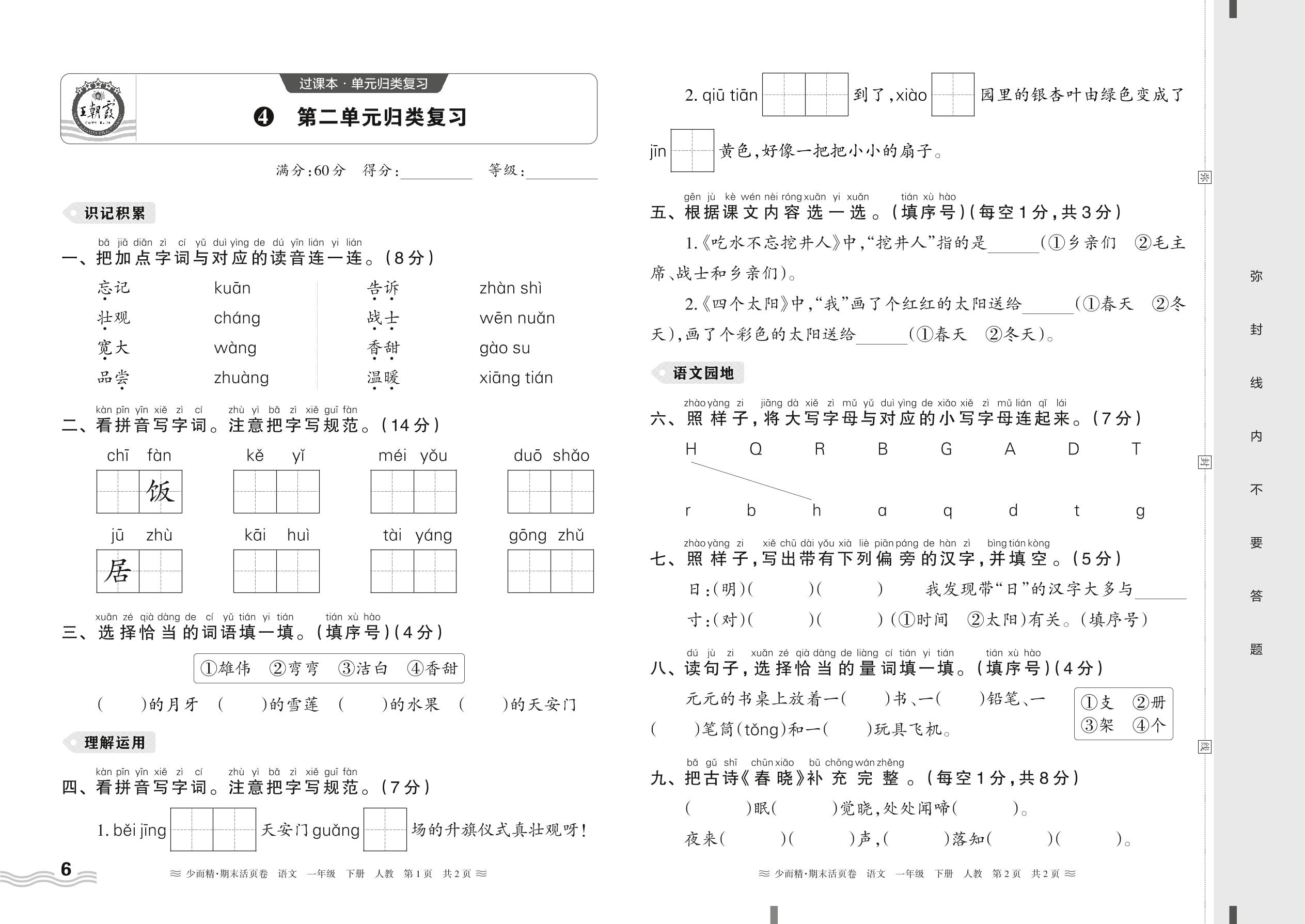 2024春下册一年级语文人教版 期末过课本HY版·第二单元归类复习