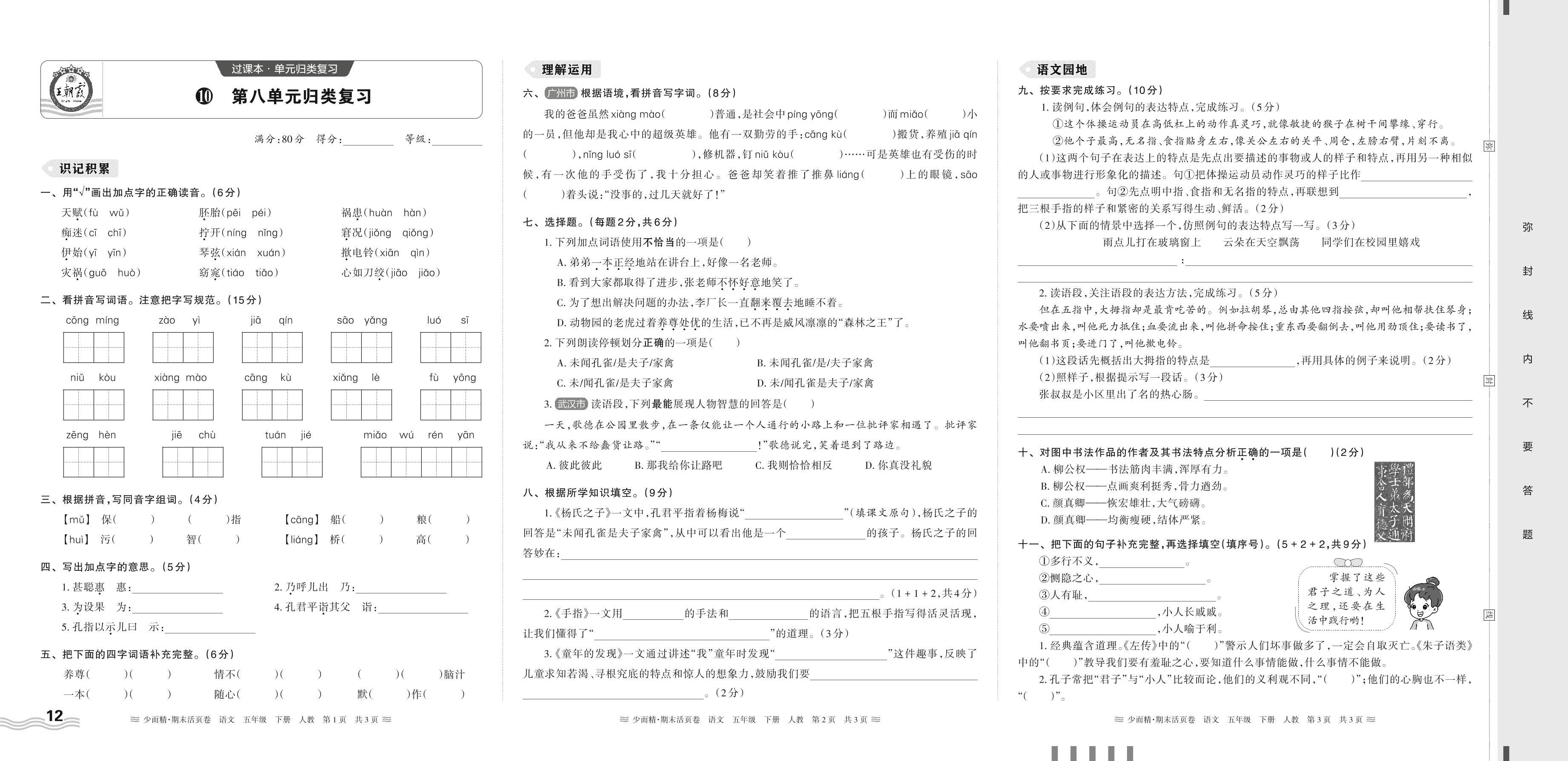 2024春下册五年级语文人教版 期末过课本HY版·第八单元归类复习