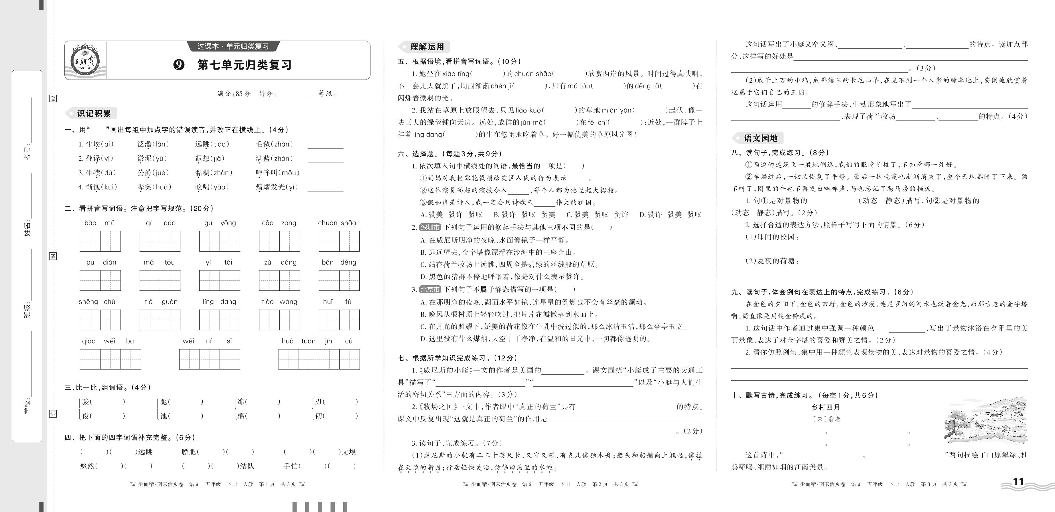 2024春下册五年级语文人教版 期末过课本HY版·第七单元归类复习