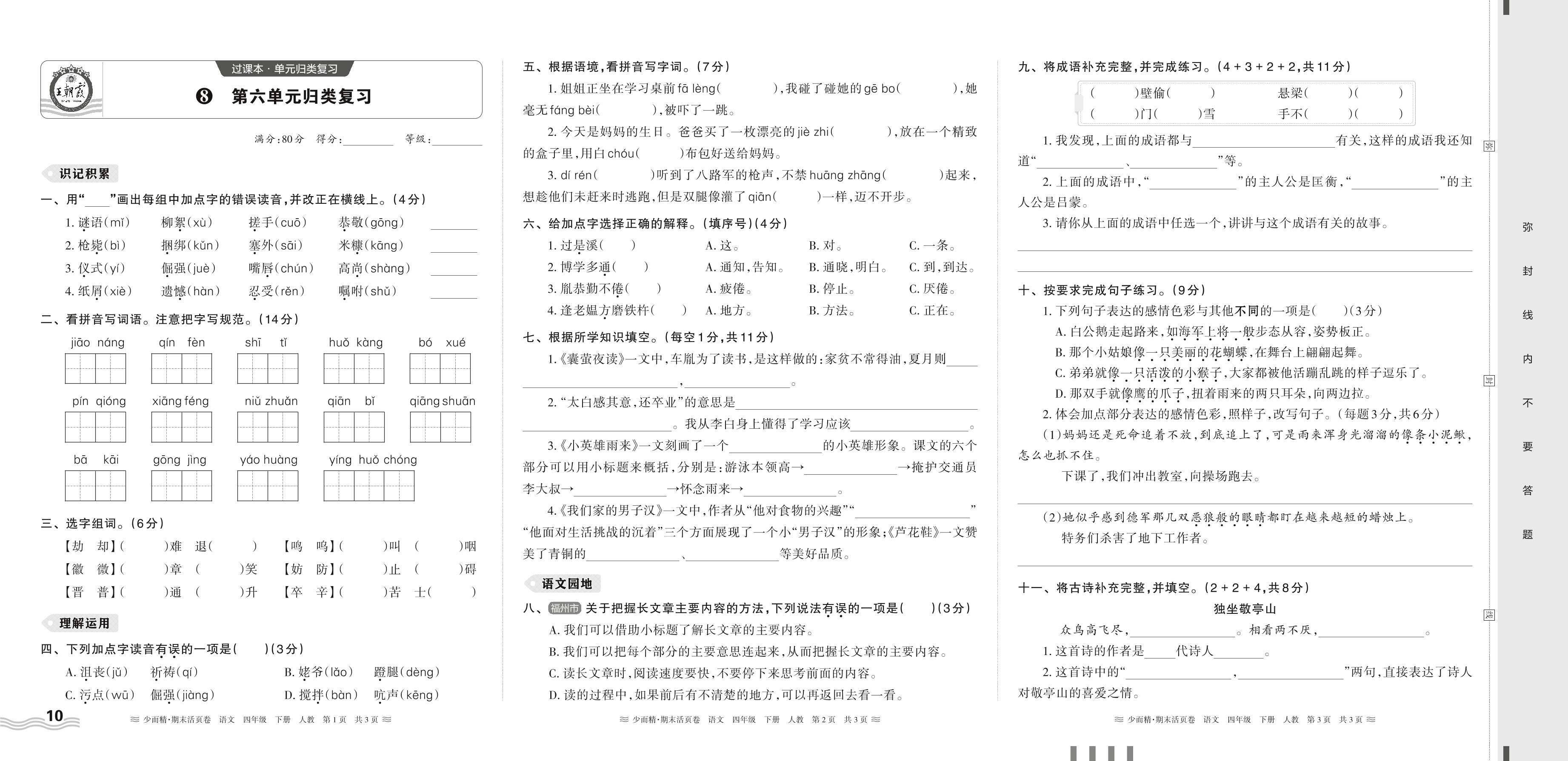 2024春下册四年级语文人教版 期末过课本HY版·第六单元归类复习
