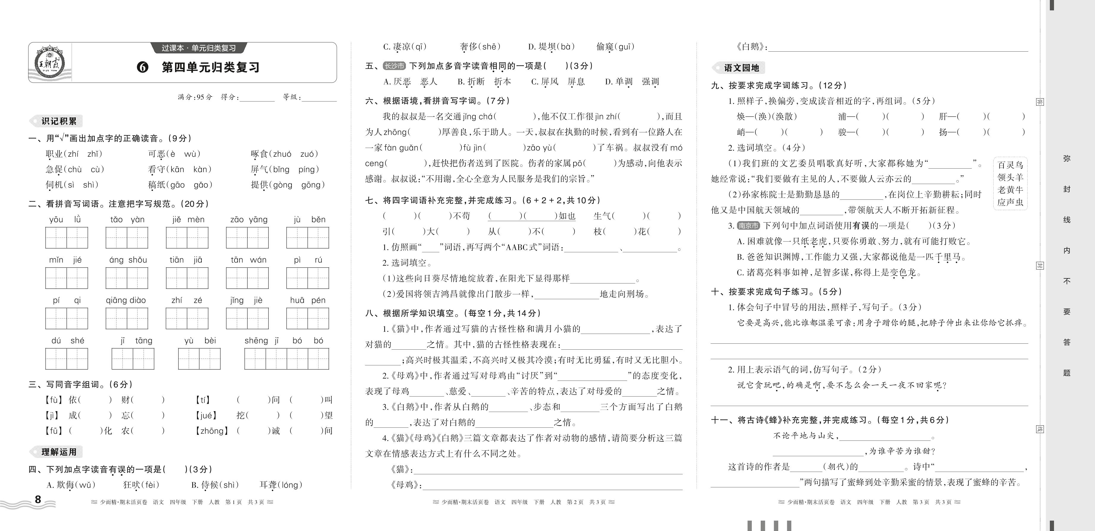 2024春下册四年级语文人教版 期末过课本HY版·第四单元归类复习