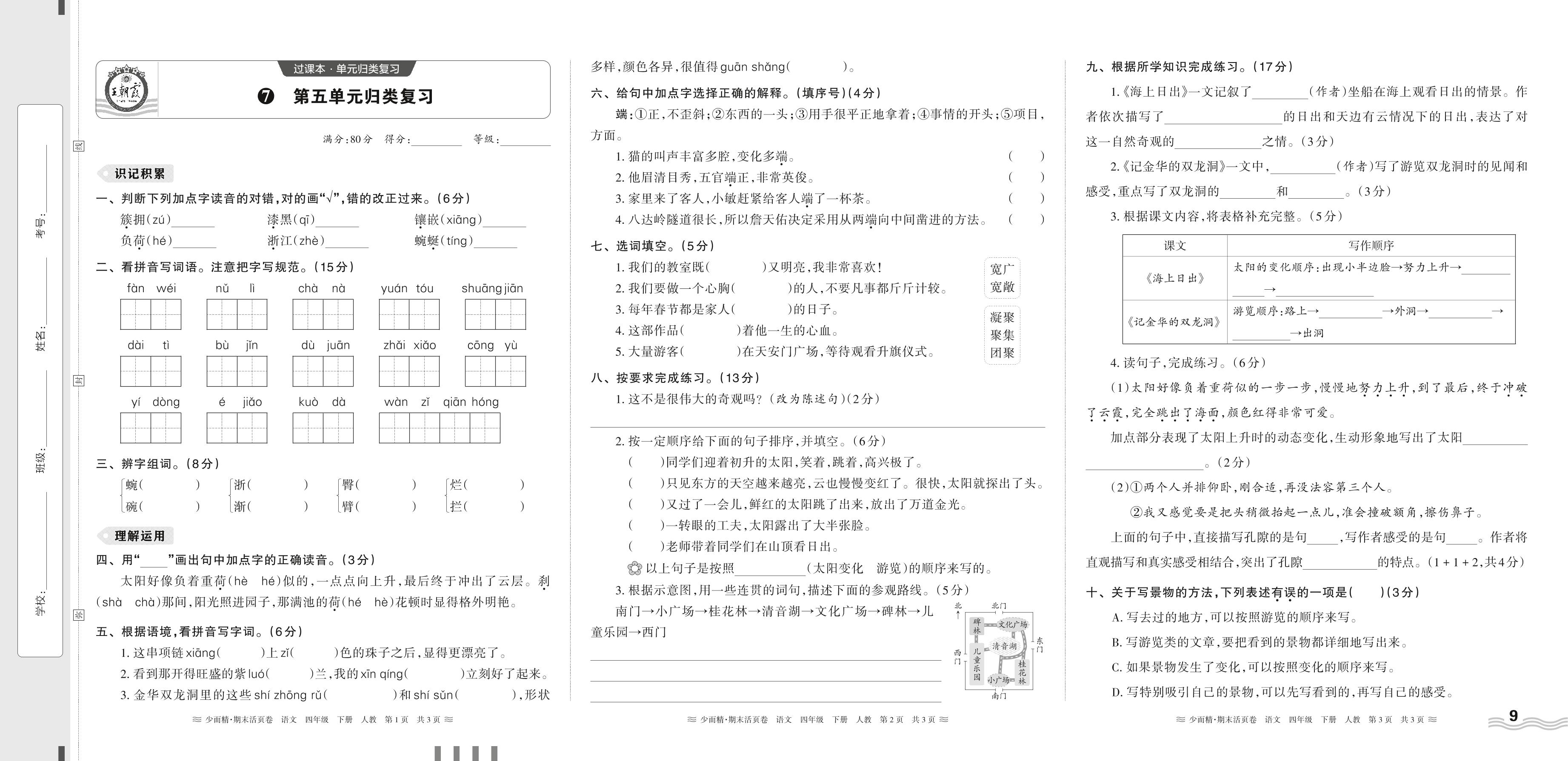 2024春下册四年级语文人教版 期末过课本HY版·第五单元归类复习