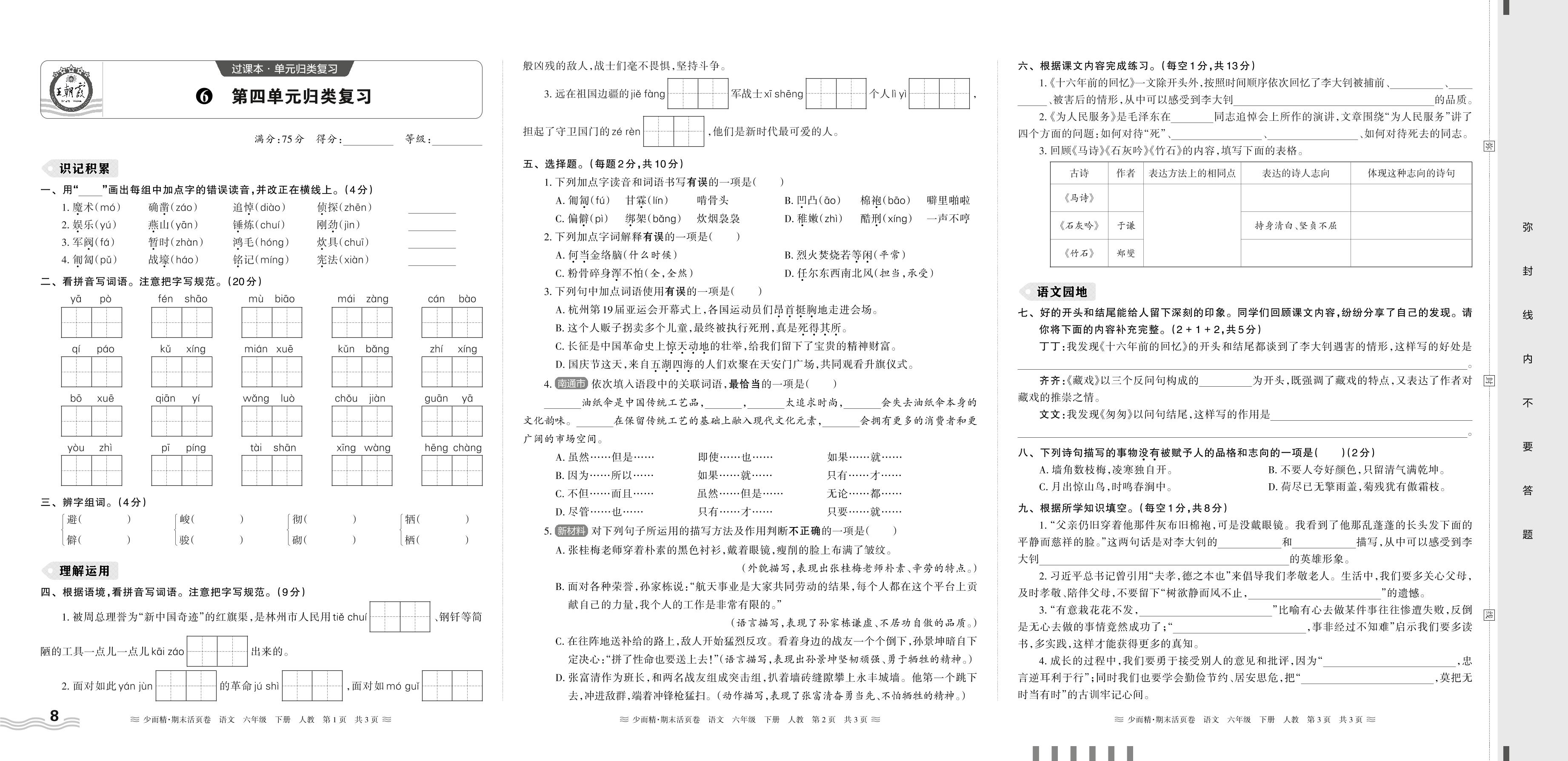 2024春下册六年级语文人教版 期末过课本HY版·第四单元归类复习