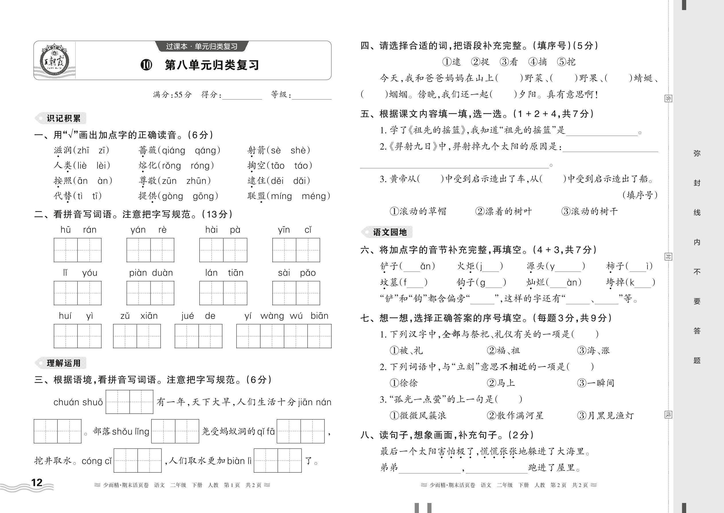 2024春下册二年级语文人教版 期末过课本HY版·第八单元归类复习