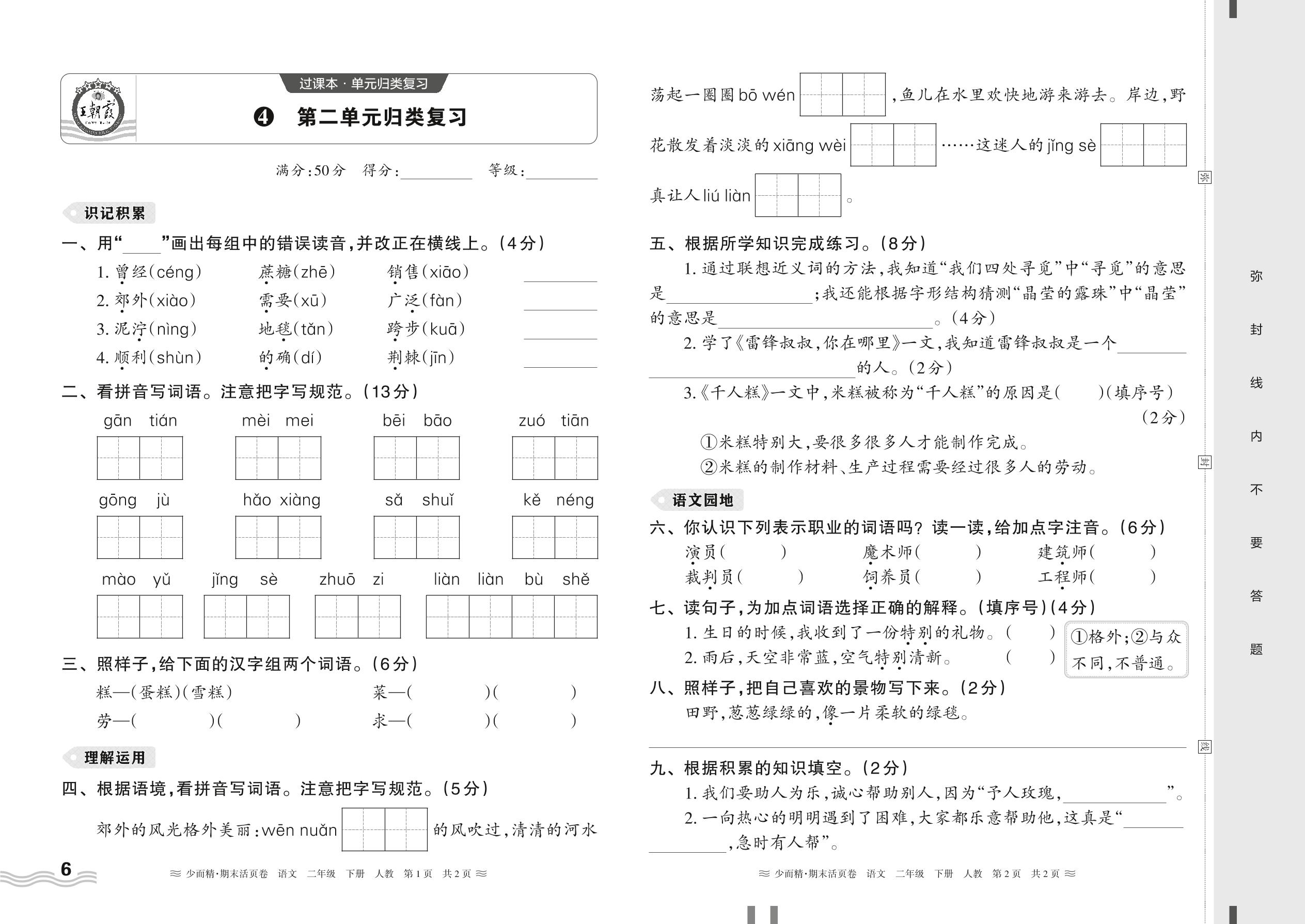 2024春下册二年级语文人教版 期末过课本HY版·第二单元归类复习