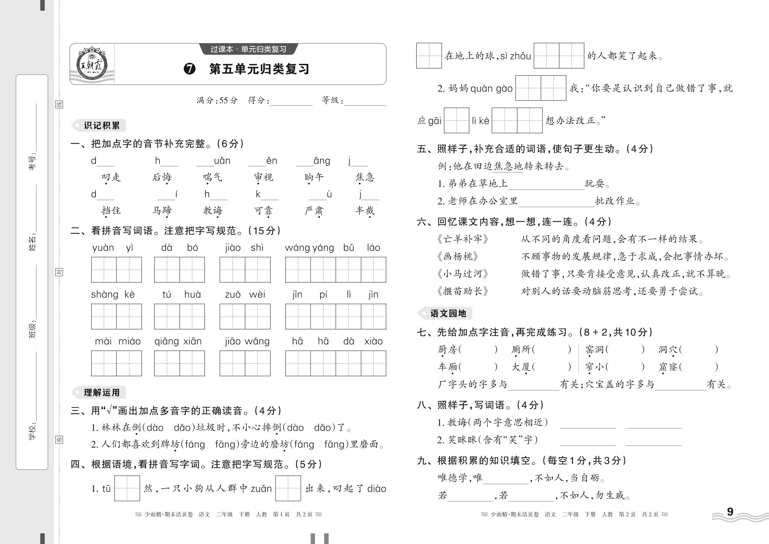 2024春下册二年级语文人教版 期末过课本HY版·第五单元归类复习