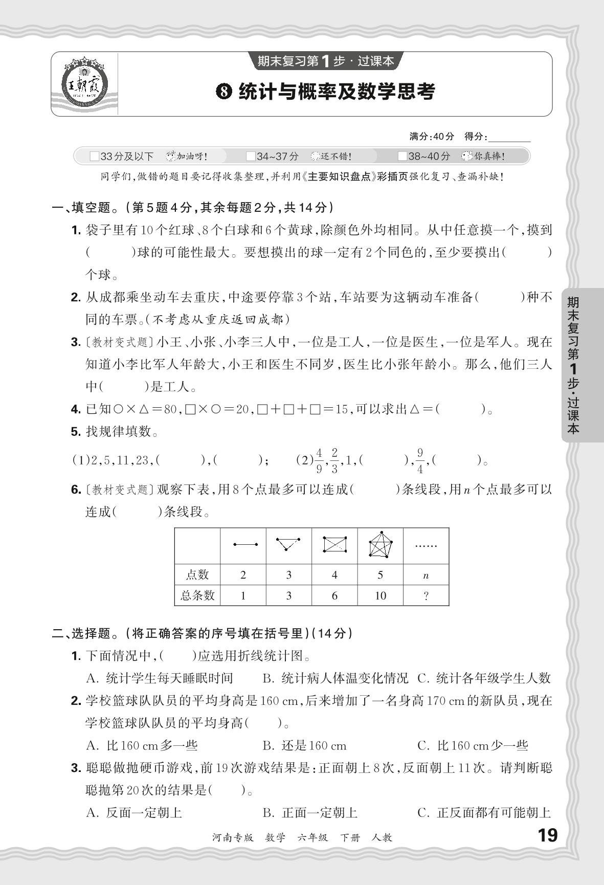 2024春下册六年级数学人教版 期末过课本河南版·统计与概率及解决问题的策略