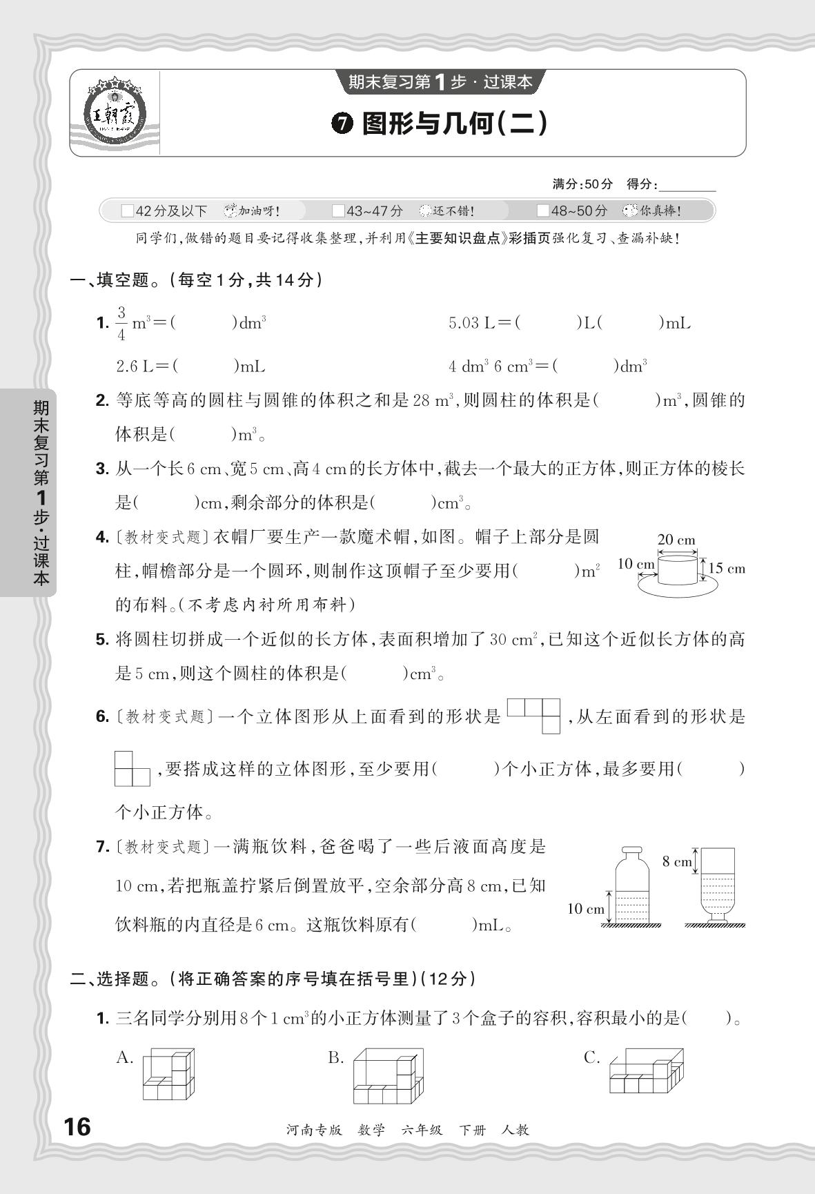 2024春下册六年级数学人教版 期末过课本河南版·图形与几何(二)