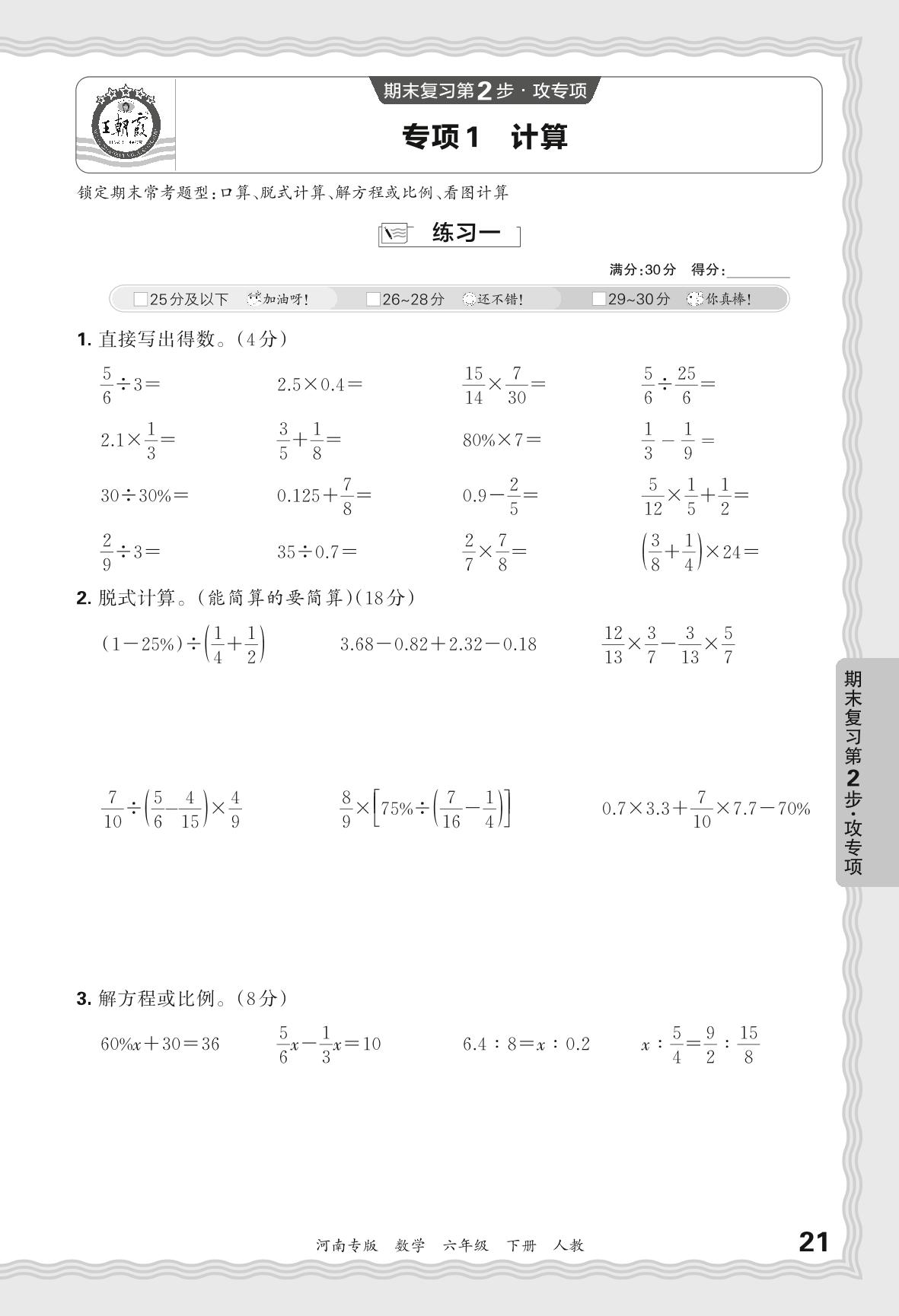 2024春下册六年级数学人教版 期末专项卷河南版·计算
