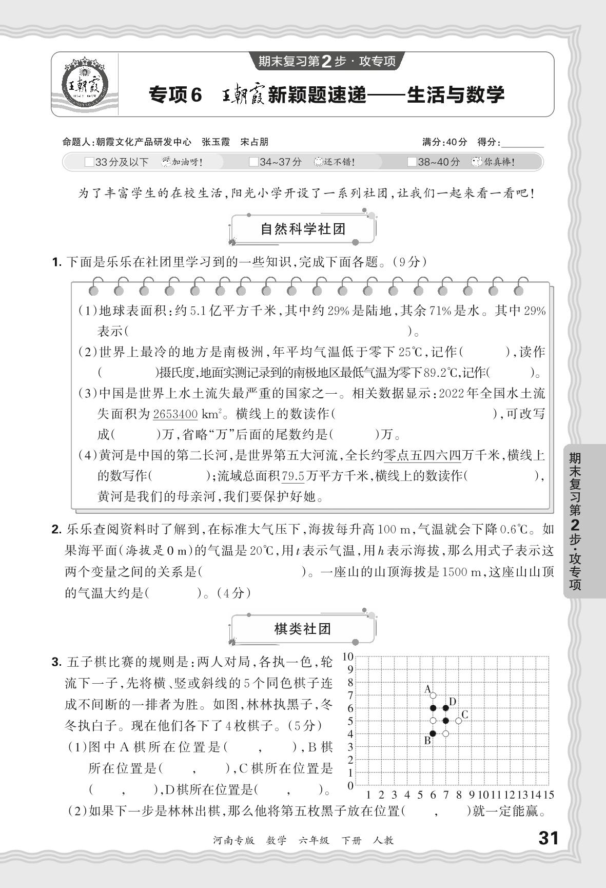 2024春下册六年级数学人教版 期末专项卷河南版·王朝霞新颖题速递——生活与数学