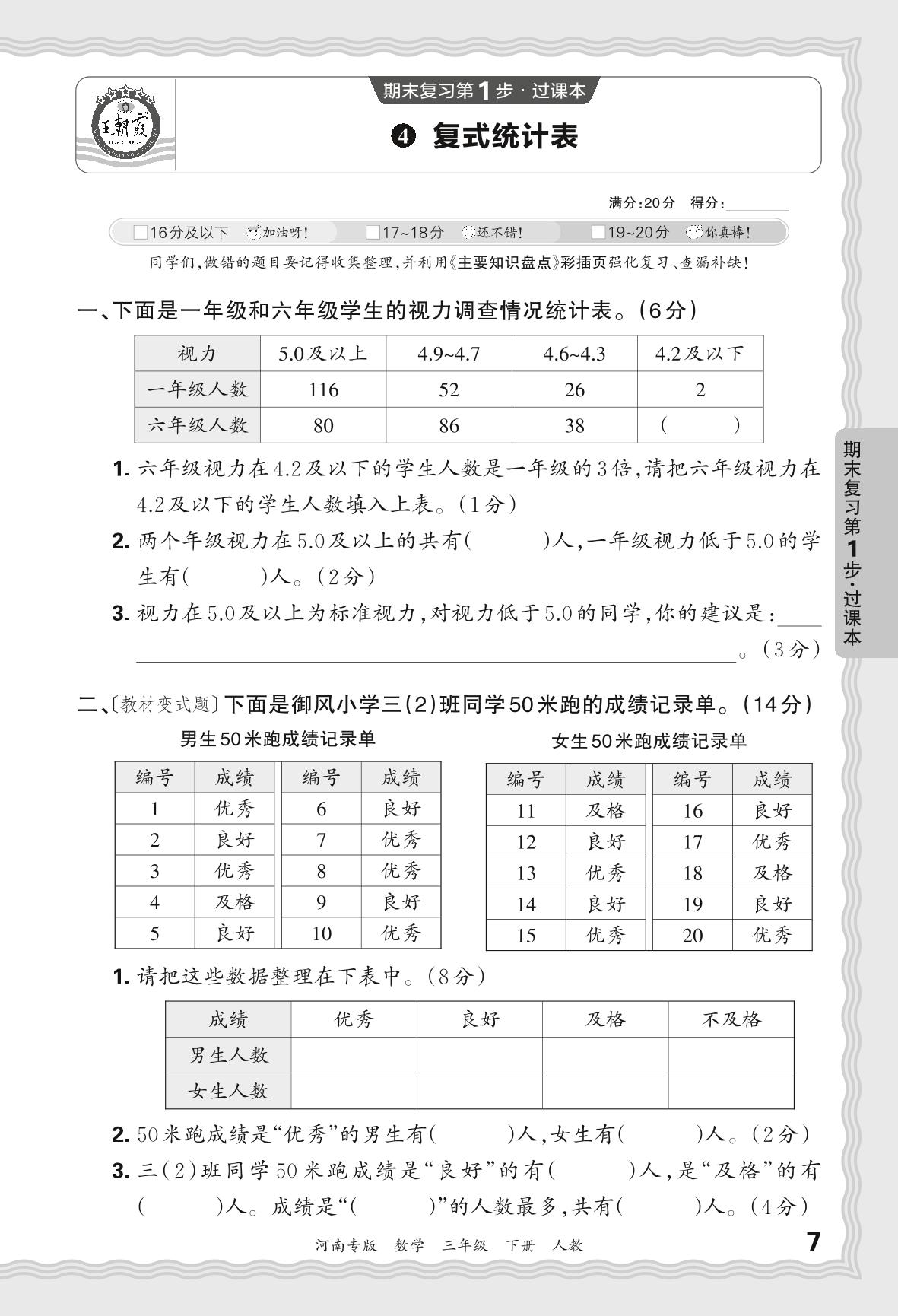 2024春下册三年级数学人教版 期末过课本河南版·复式统计表