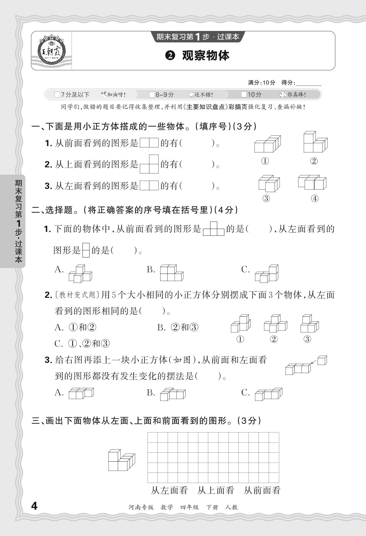 2024春下册四年级数学人教版 期末过课本河南版·观察物体