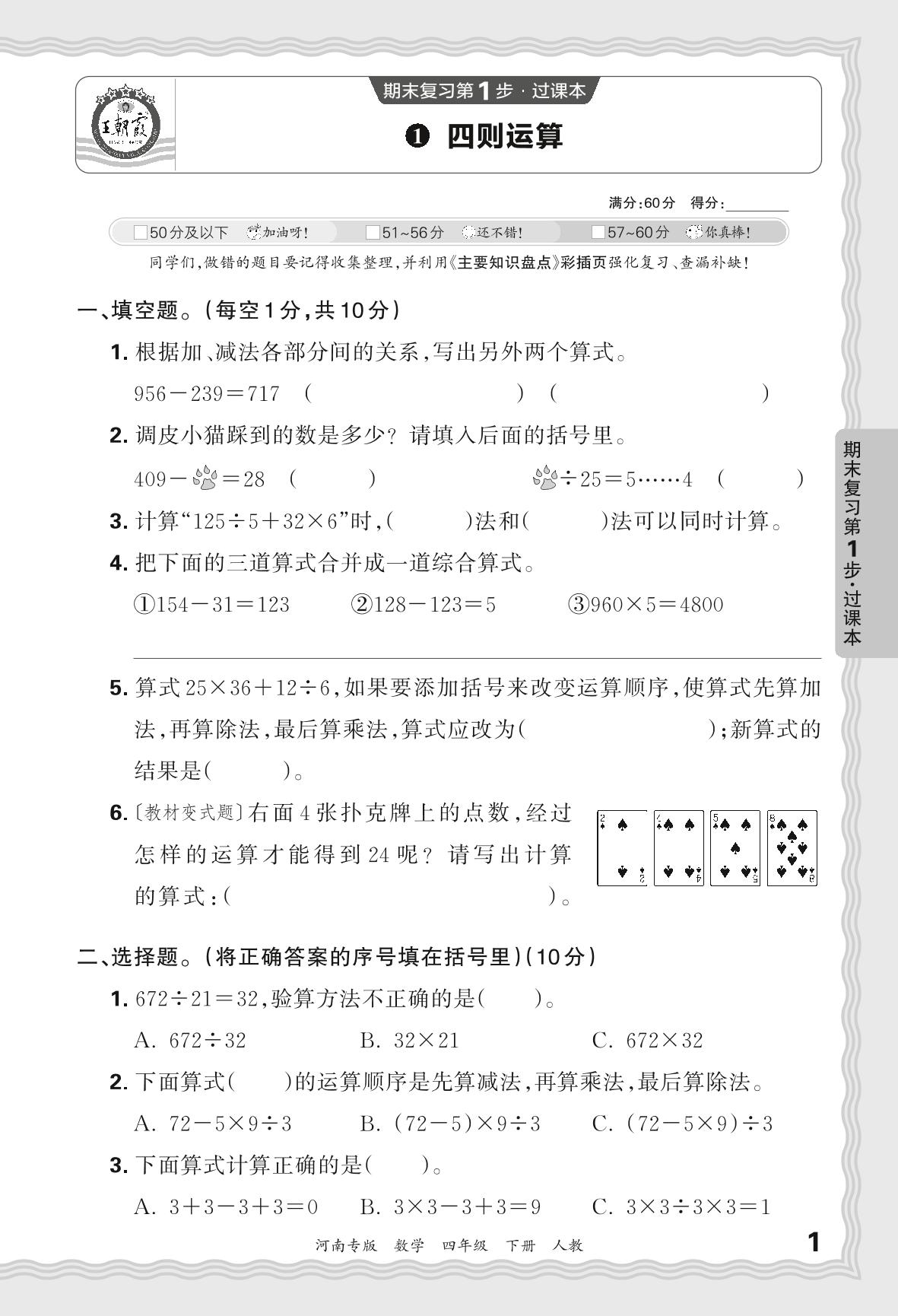 2024春下册四年级数学人教版 期末过课本河南版·四则运算