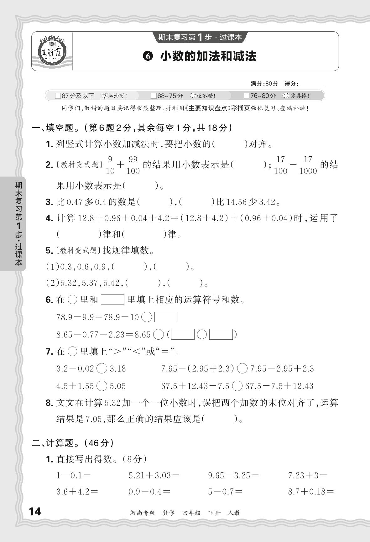 2024春下册四年级数学人教版 期末过课本河南版·小数的加法和减法