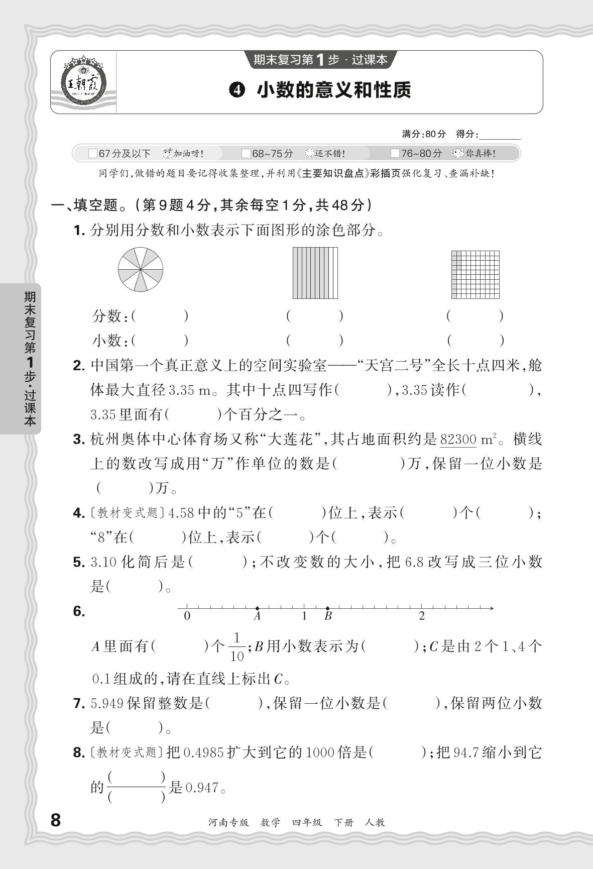 2024春下册四年级数学人教版 期末过课本河南版·小数的意义和性质